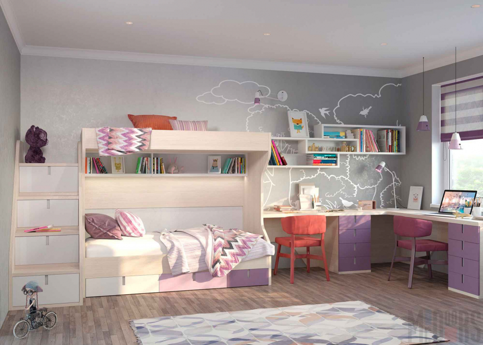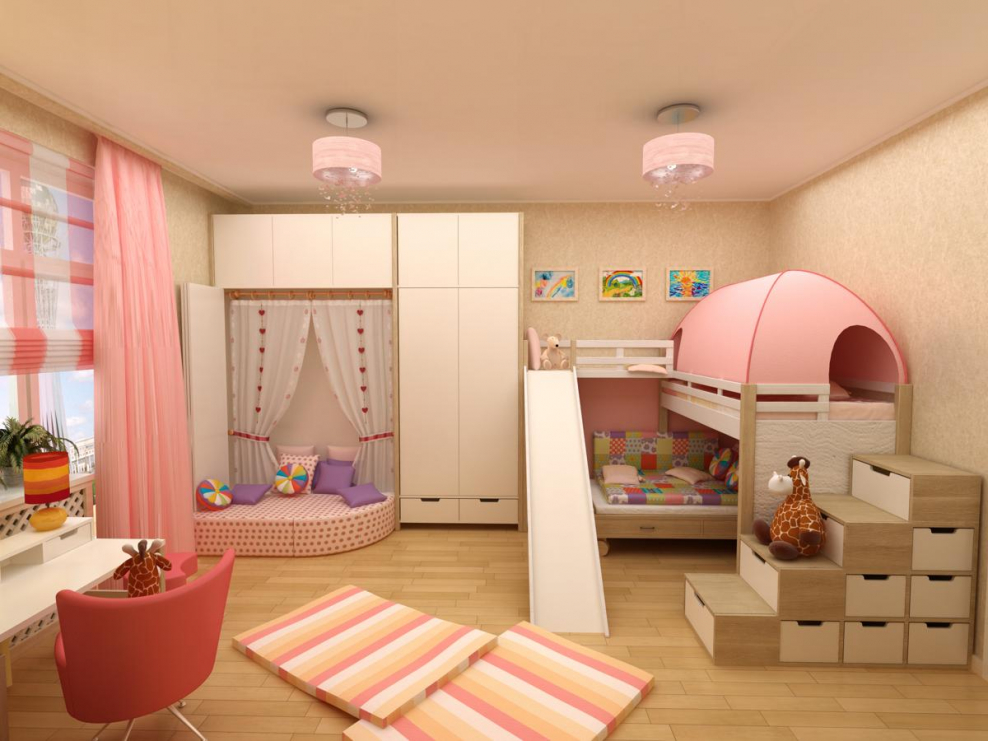 Детская комната для девочек разного возраста