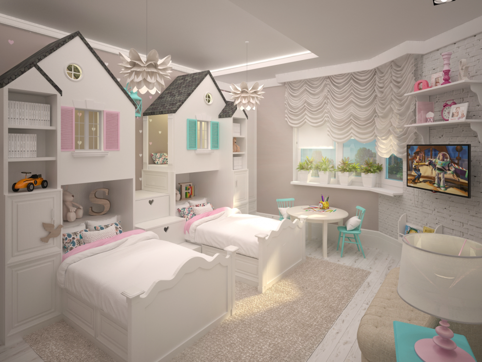Детская комната для девочек двойняшек
