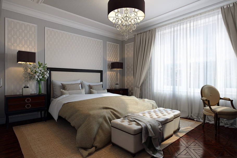 Обои в стиле неоклассика для спальни (62 фото)