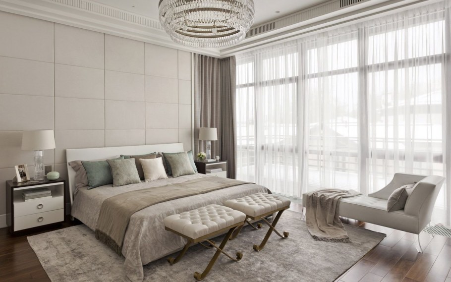 Спальня в неоклассике в светлых тонах