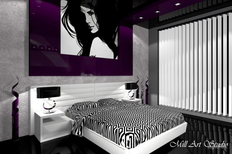 Черно белая спальня ар деко