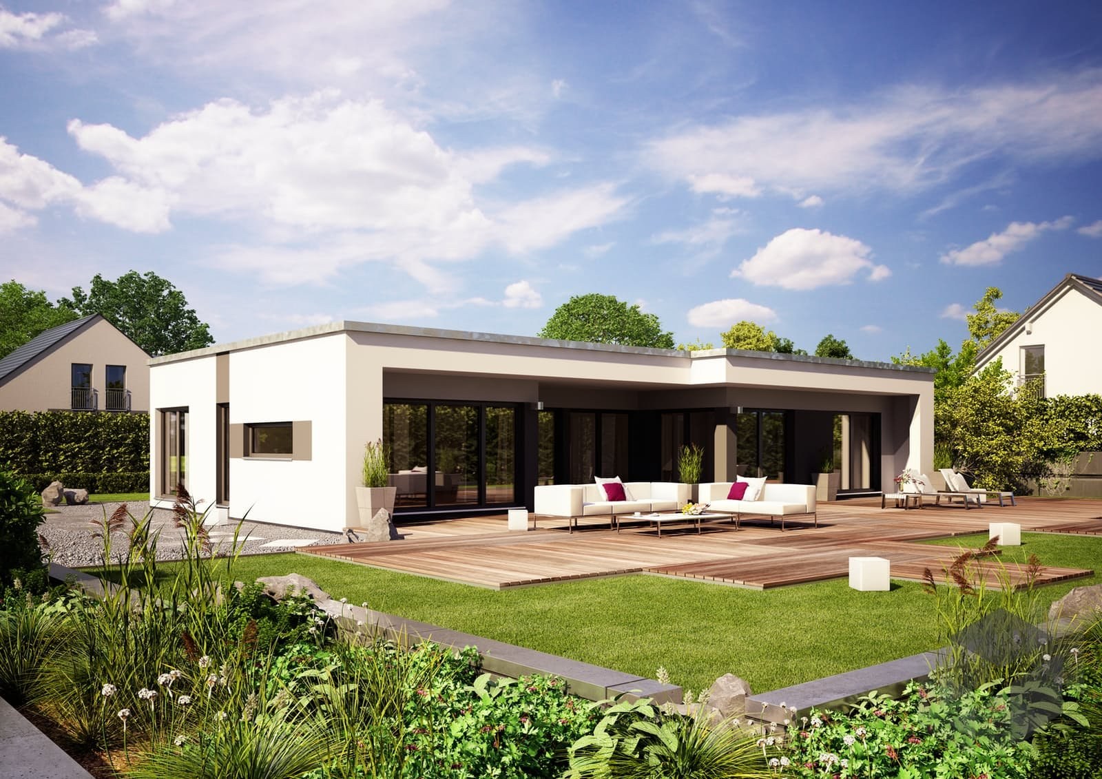 Одноэтажный дом в стиле бунгало