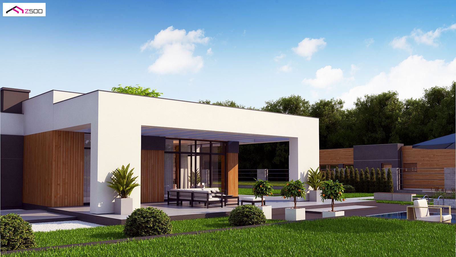 Одноэтажный дом z500 с плоской крышей