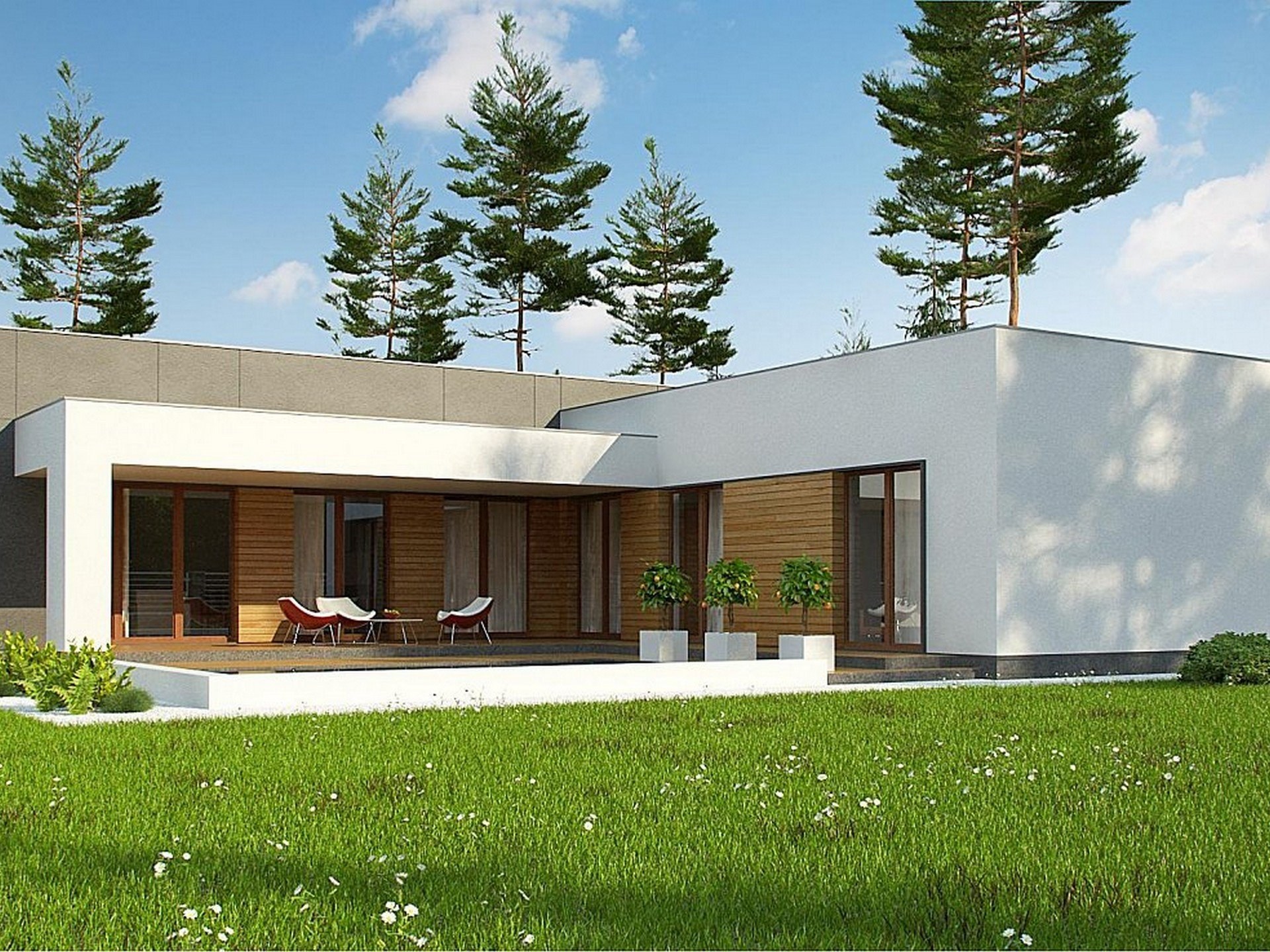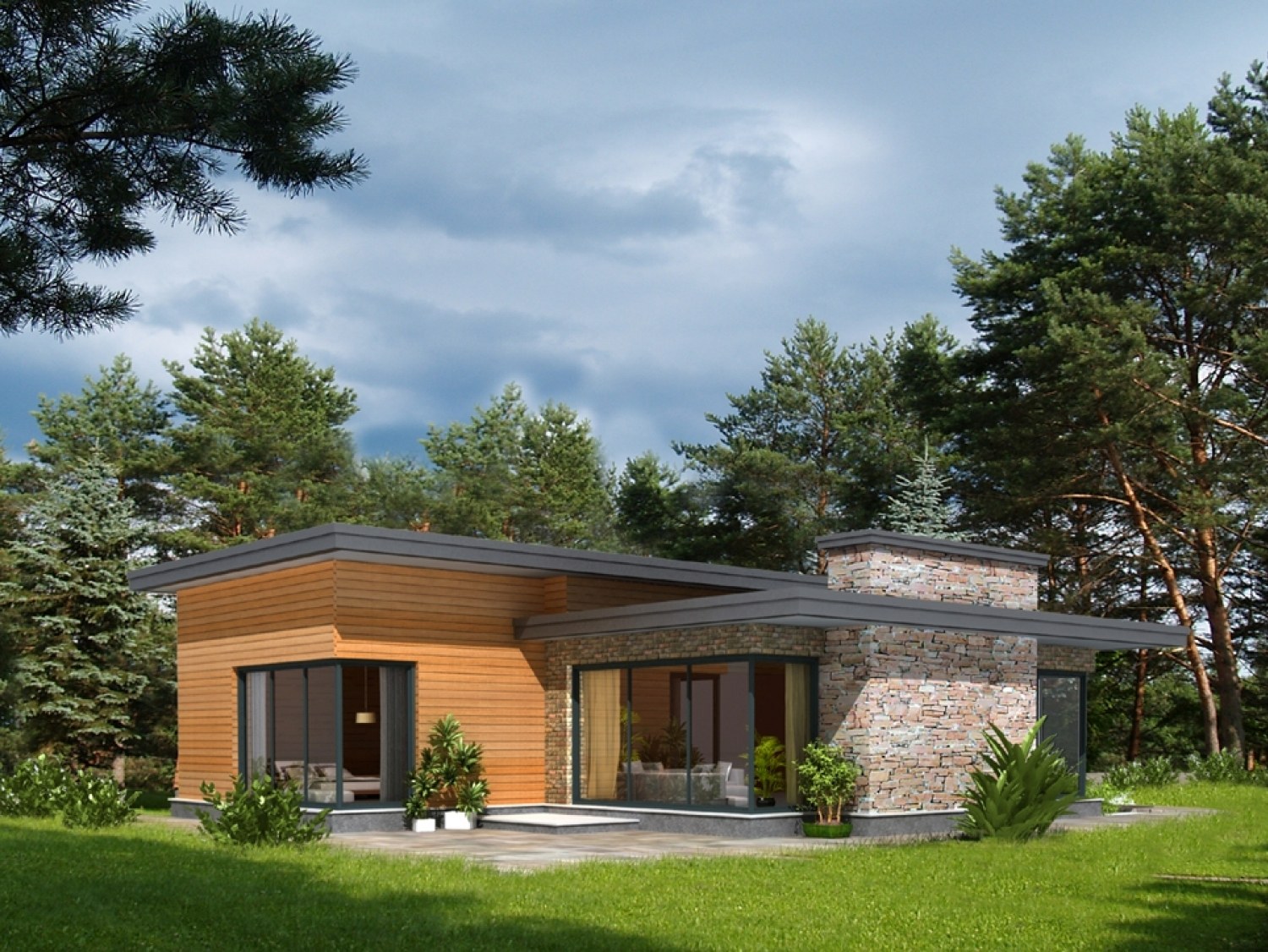 Красивые одноэтажные дома с плоской крышей (52 фото)