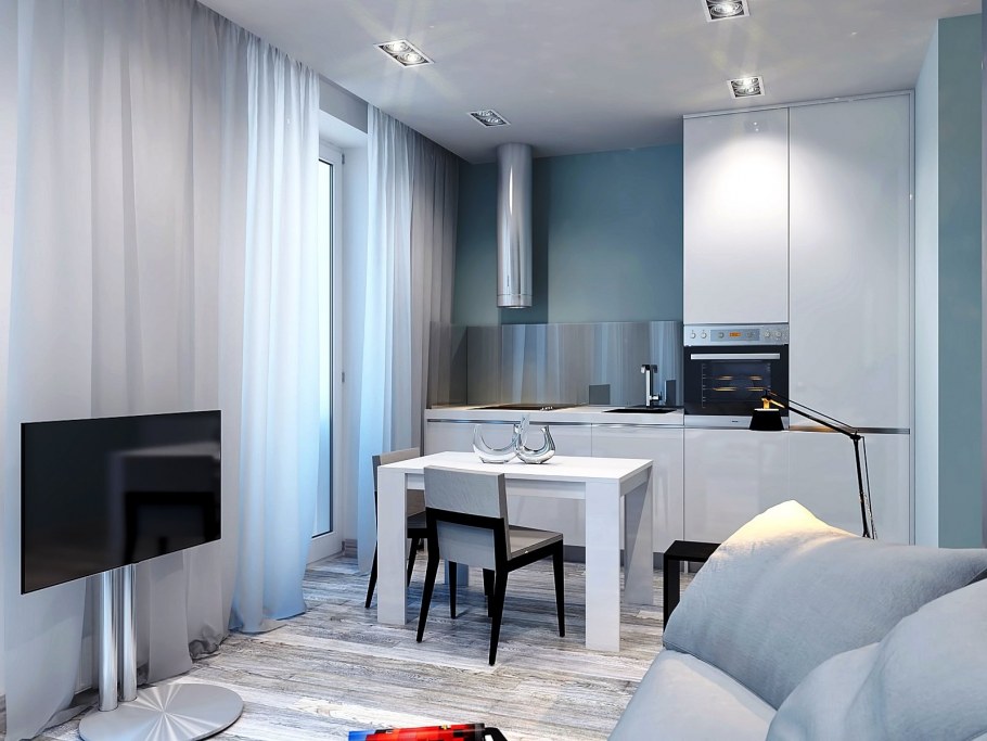 Дизайн кухни бюджетно и со вкусом с белых тонах