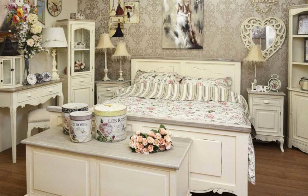 Интерьер спальни с кованной кроватью в стиле Прованс