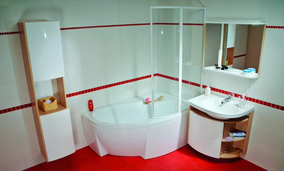 Дизайн ванной комнаты с угловой ванной и окном (40 фото)