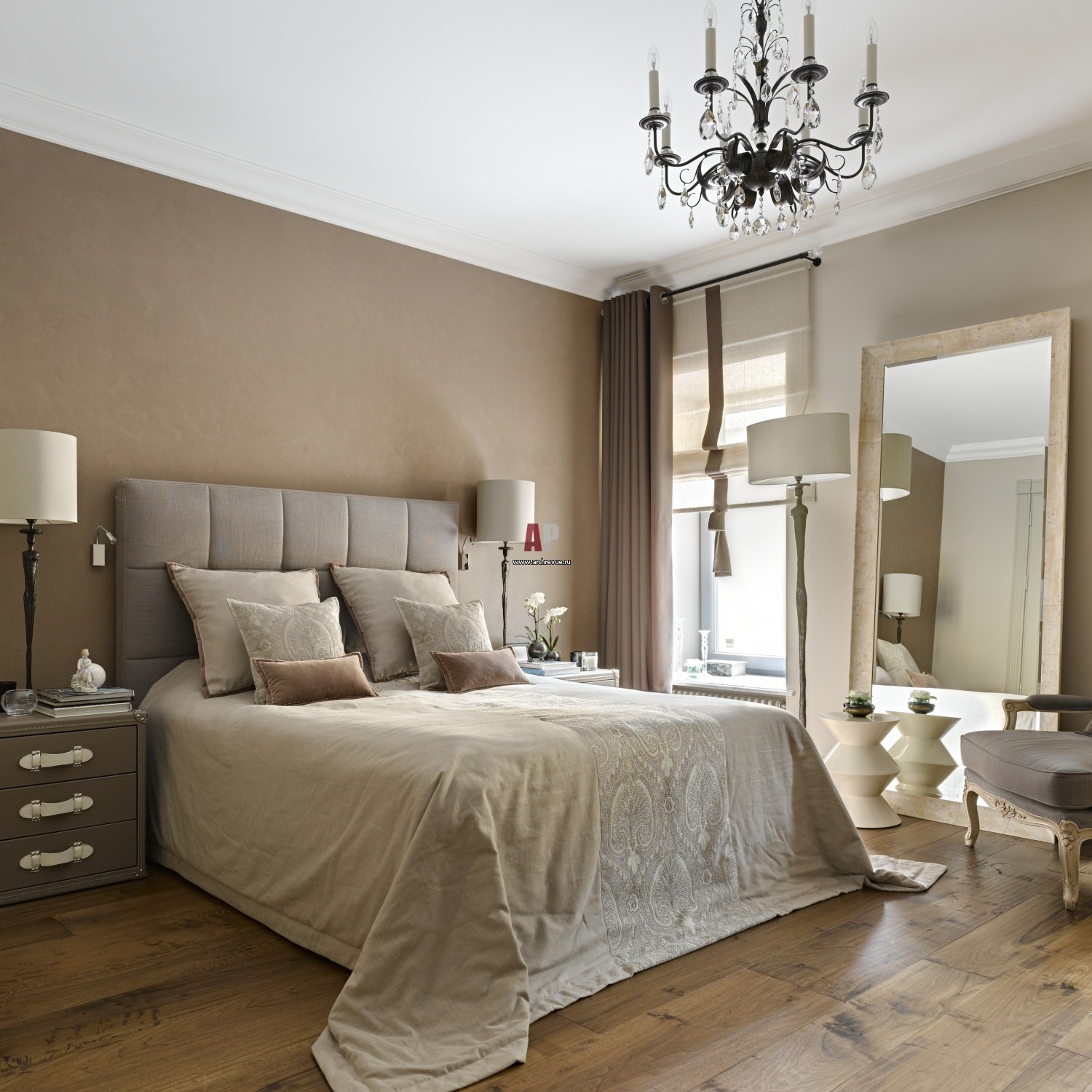Оливково бежевая спальня