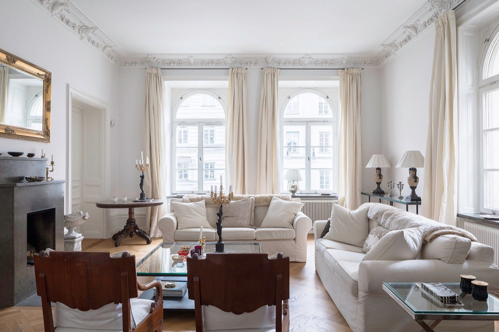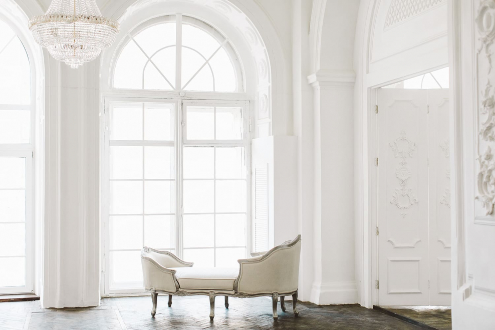 Белый интерьер с лепниной