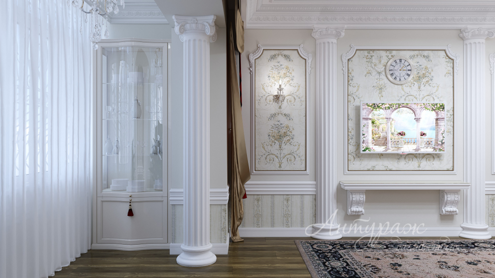 Полуколонны в интерьере гостиной