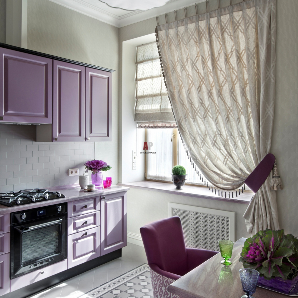 Сиреневые занавески на кухню