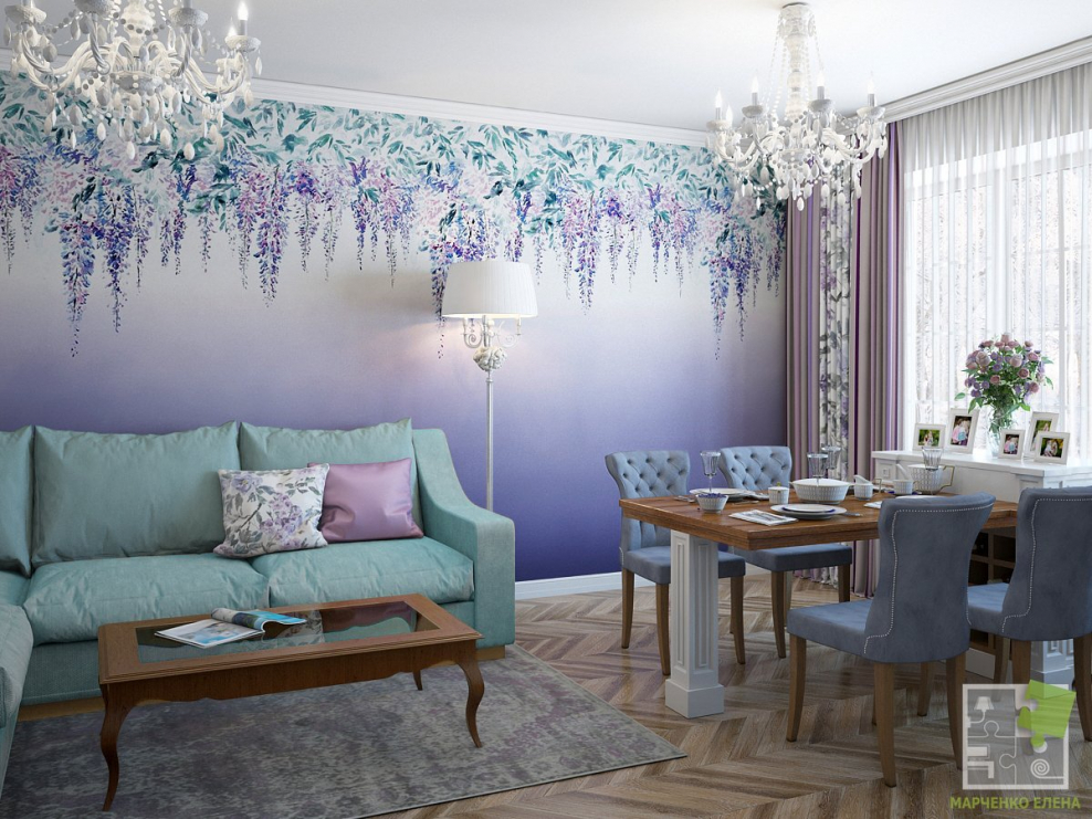 Гостиная в лавандовых тонах