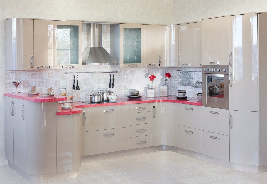 Кухня бежевый глянец