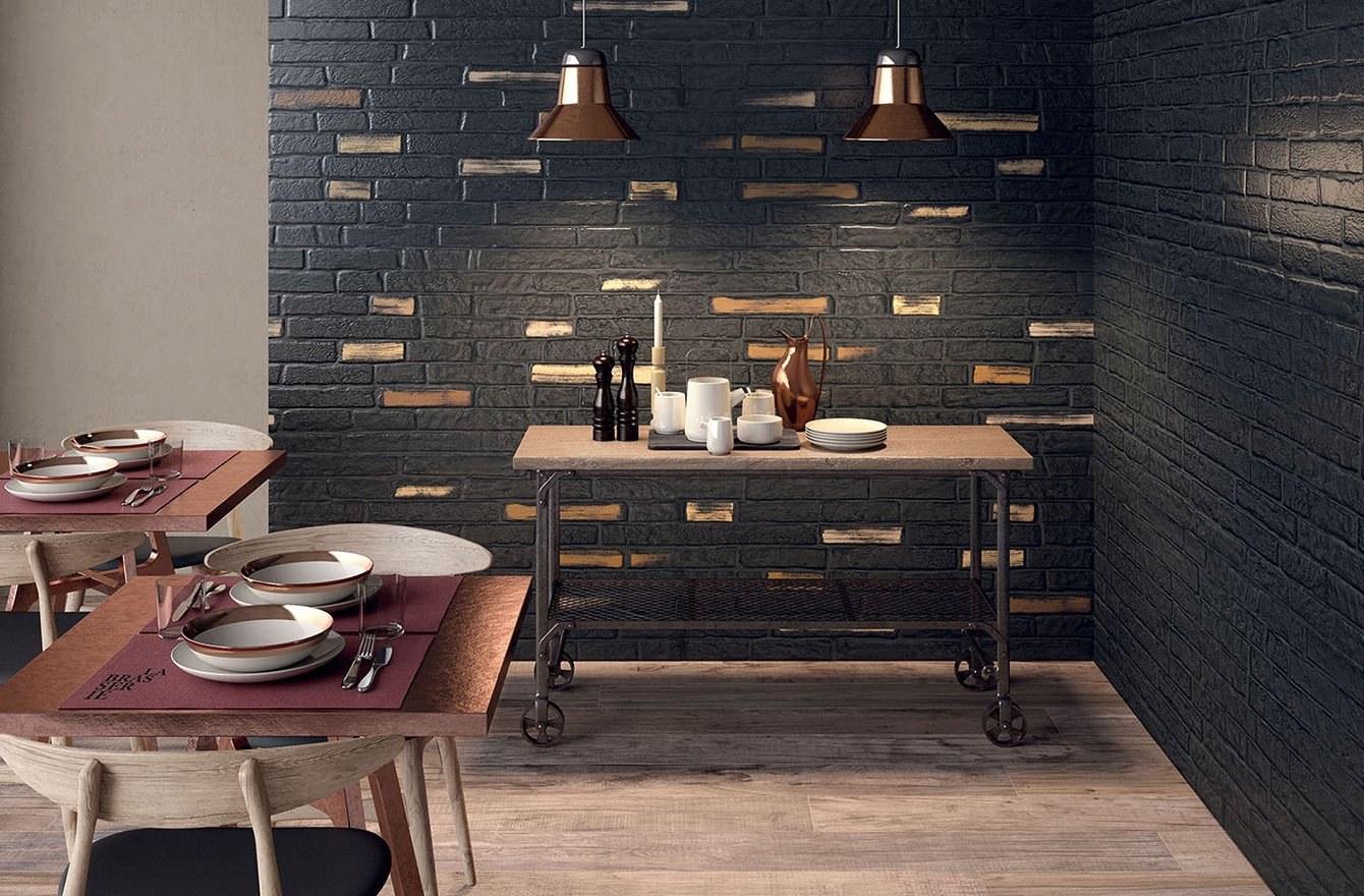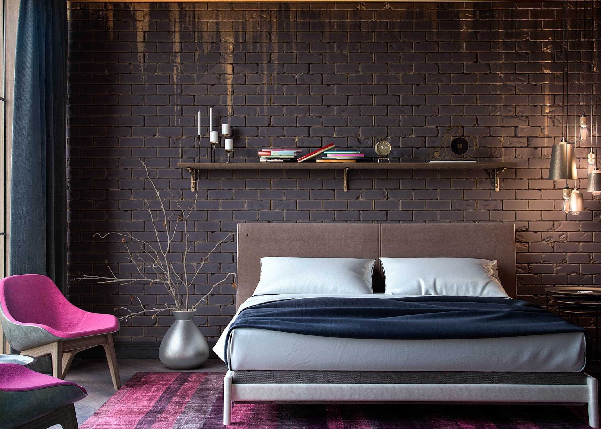 Темный кирпич в интерьере
