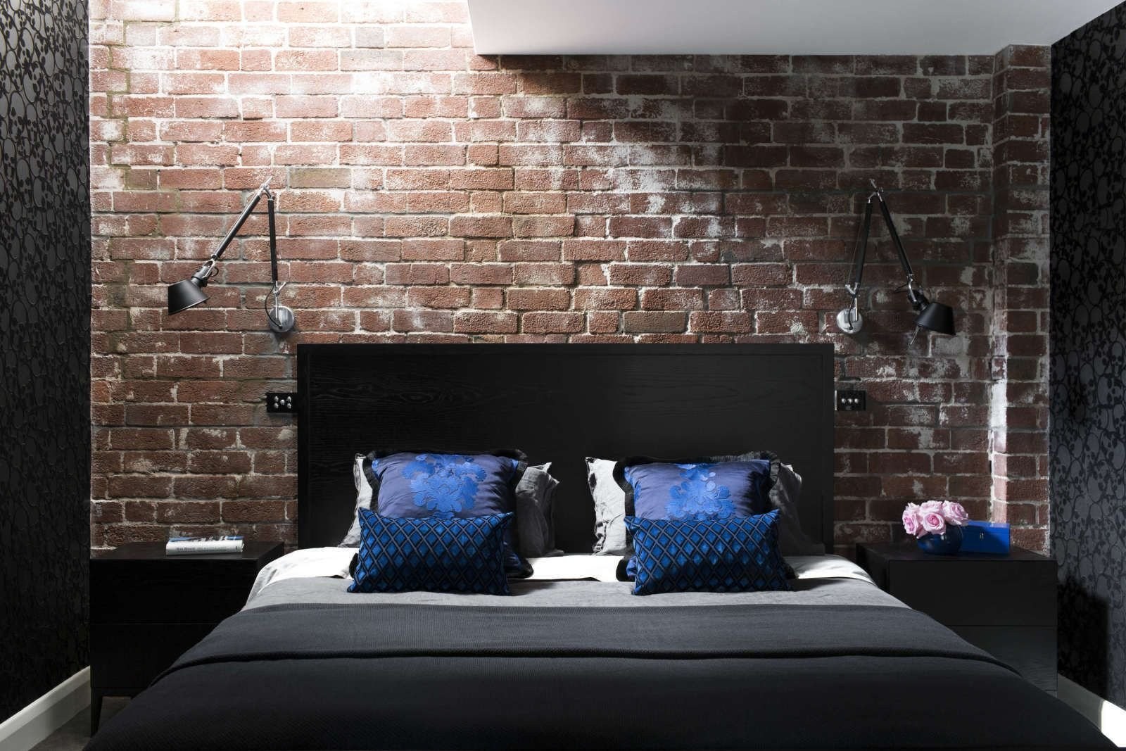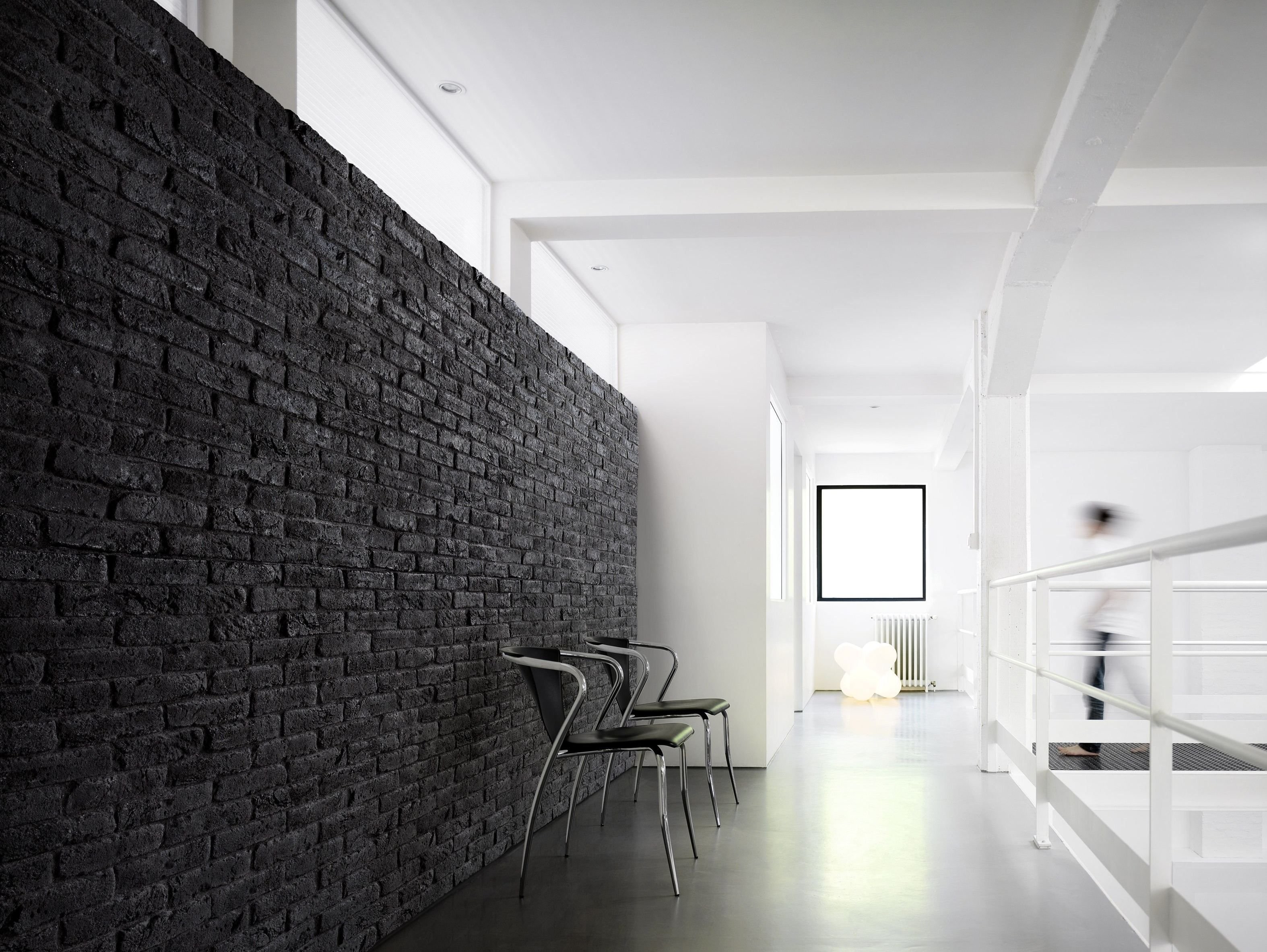 Черная кирпичная стена в интерьере