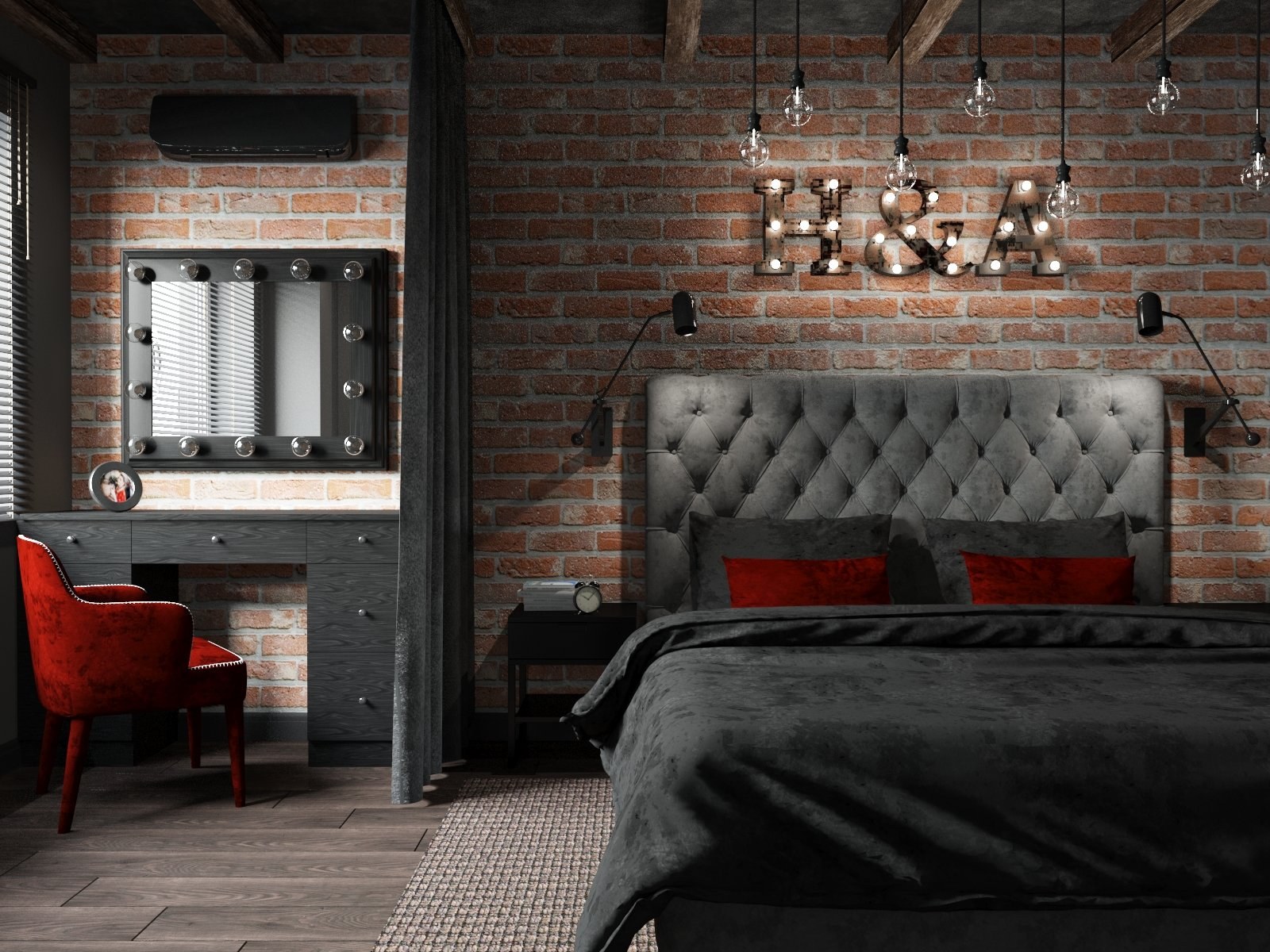 Спальня лофт темная