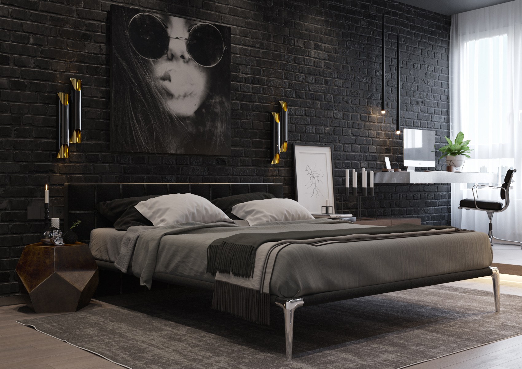 Спальня в стиле лофт в темных тонах в спальне