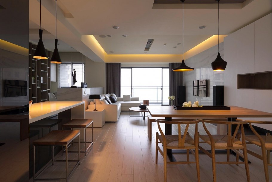 Светильники в интерьере гостиной совмещенной с кухней (54 фото)