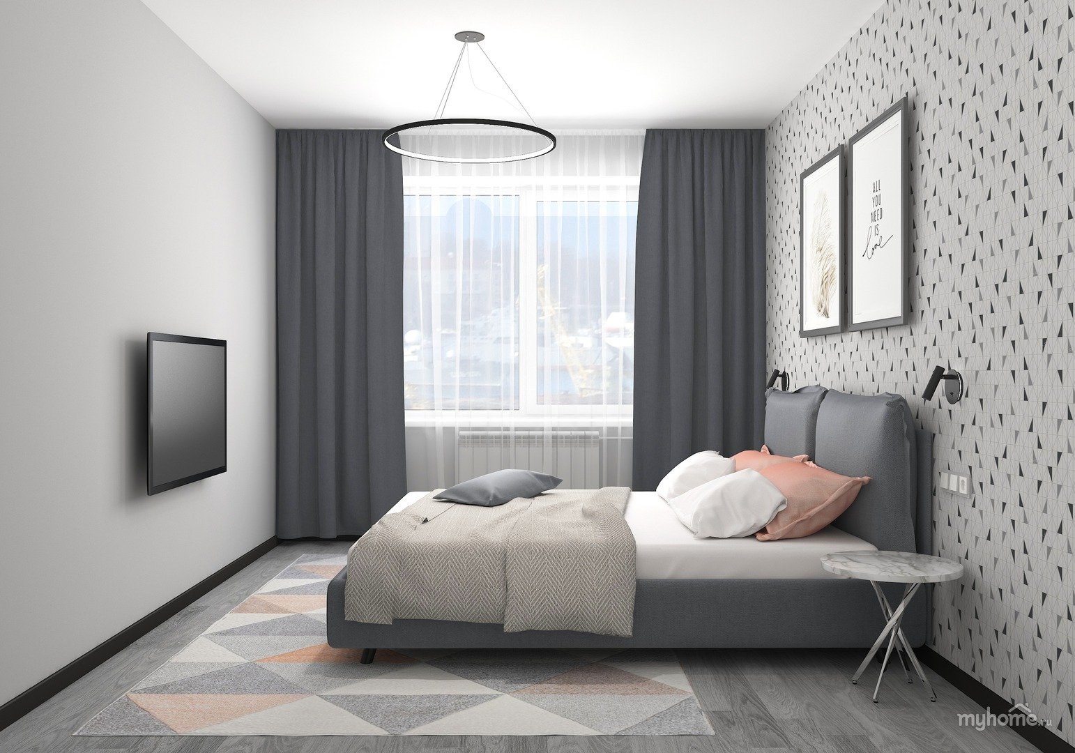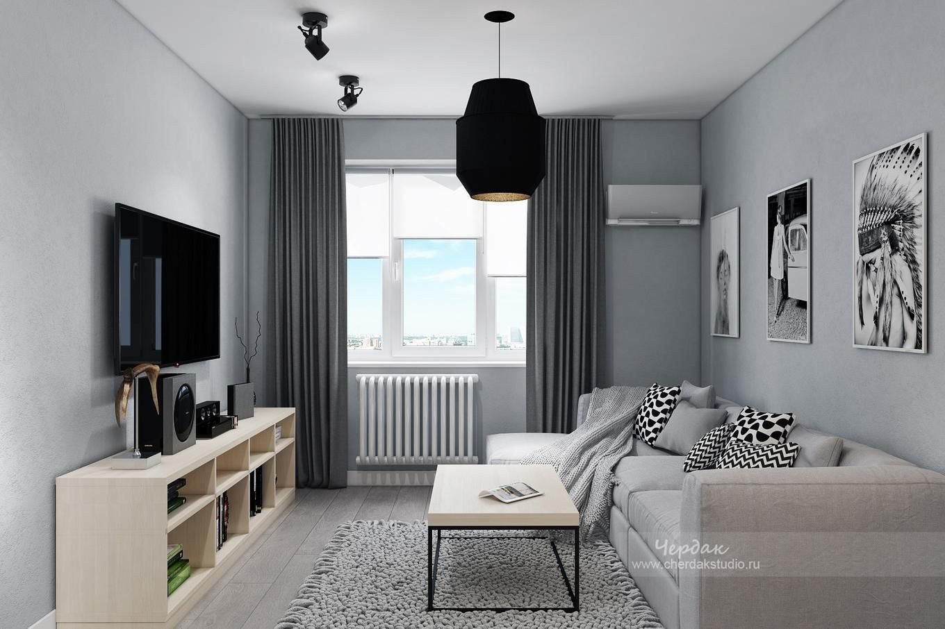 Интерьер комнаты 2,5на 6 в серых тонах