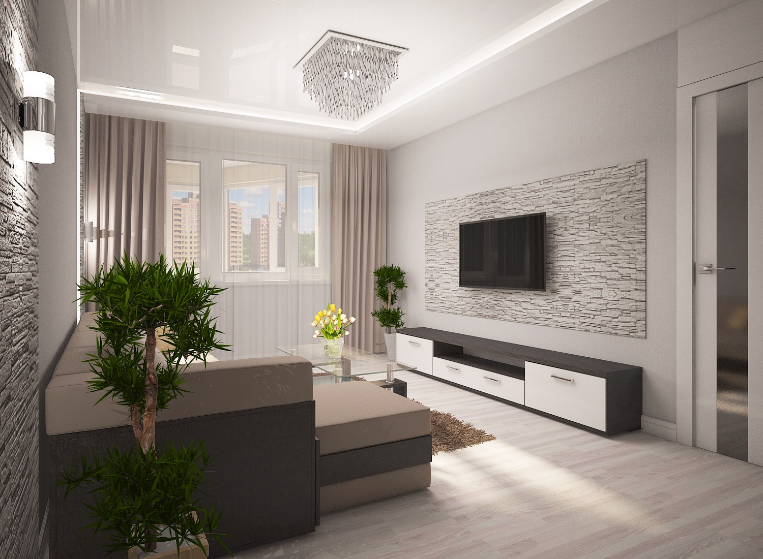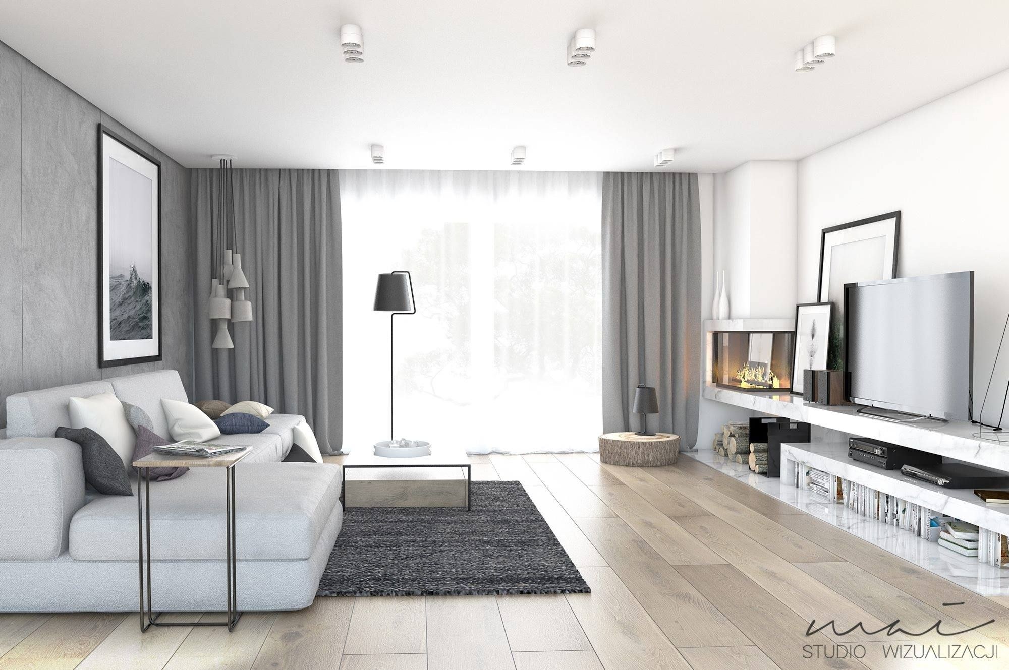 Интерьер гостиной в бело серых тонах