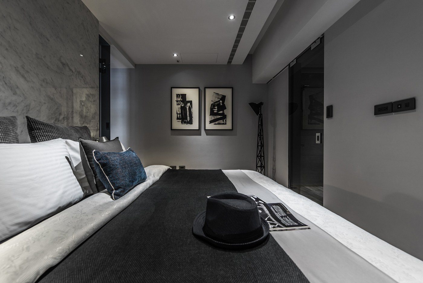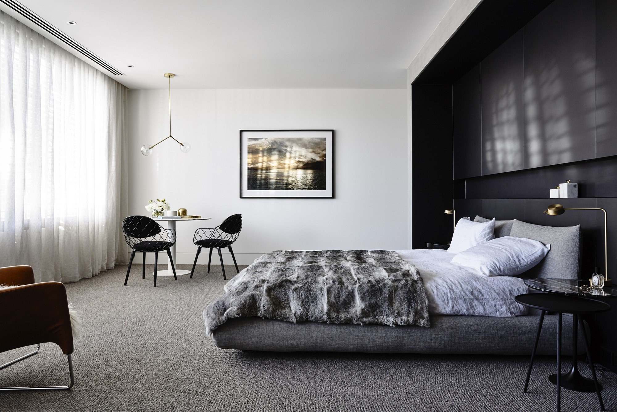 Черно белая спальня Минимализм