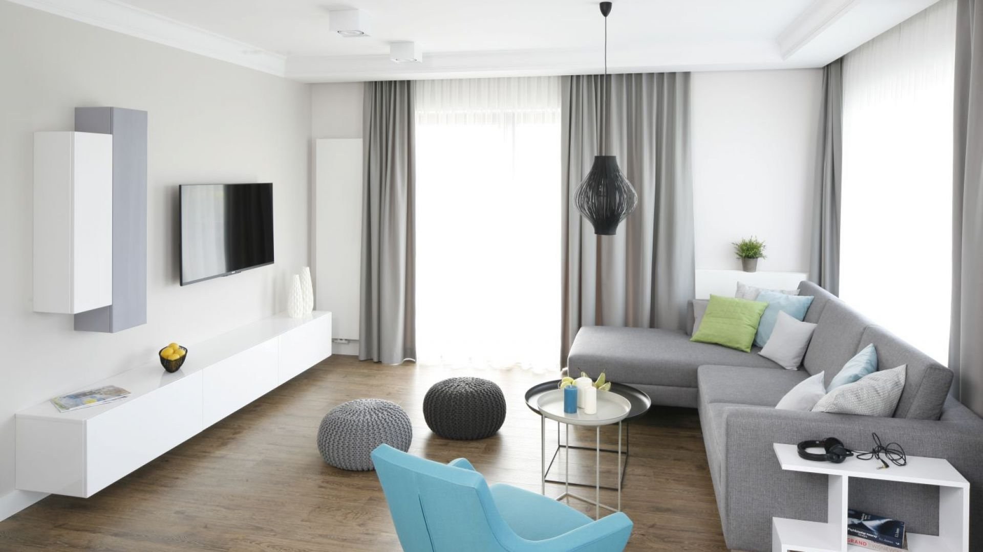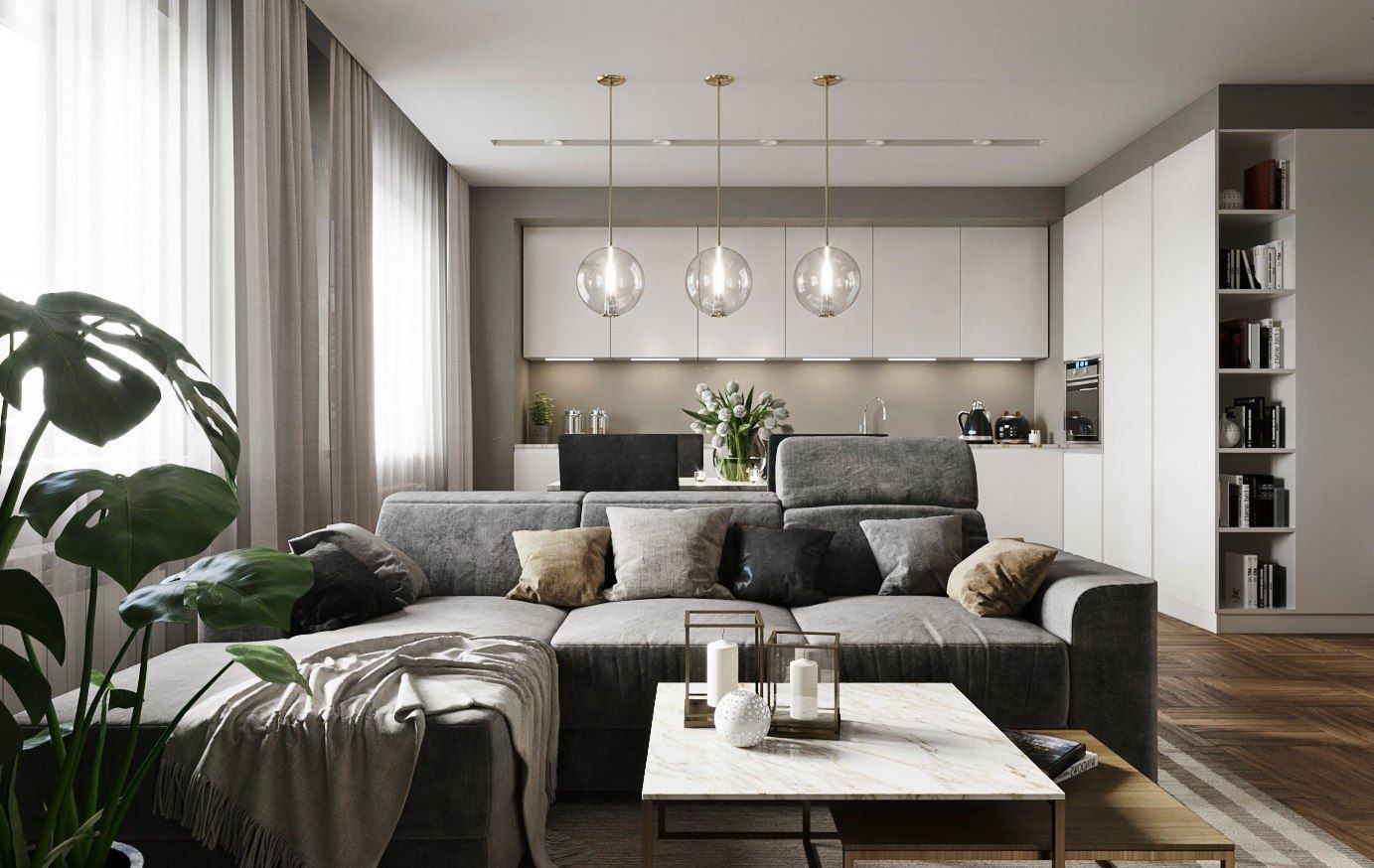 Современная гостиная в серых тонах