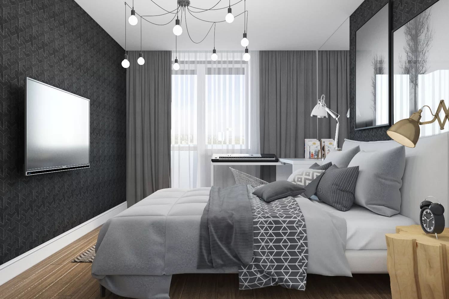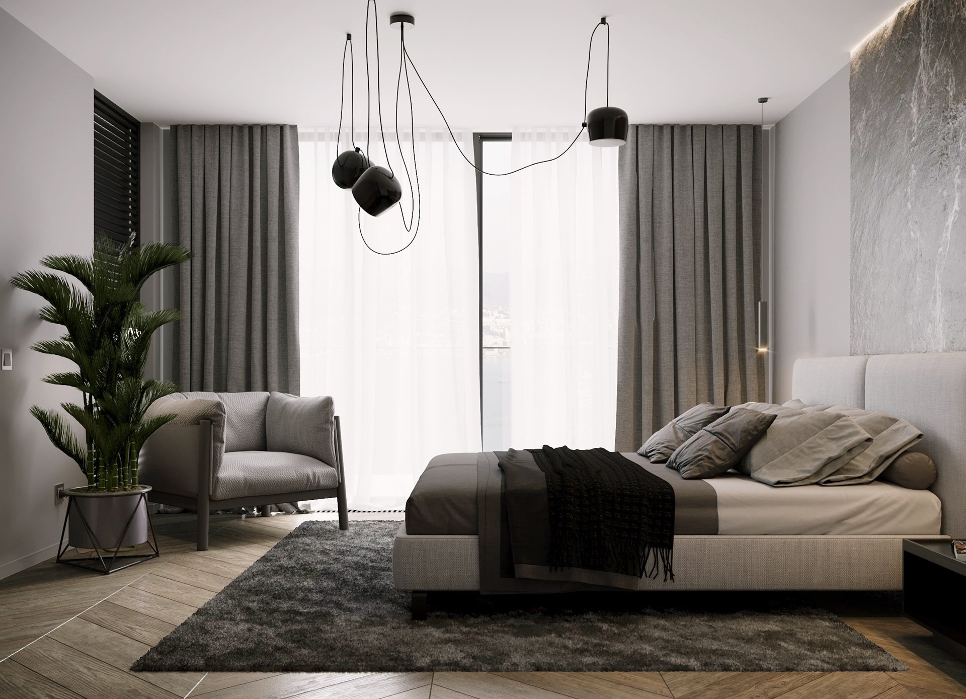 Серо черная спальня