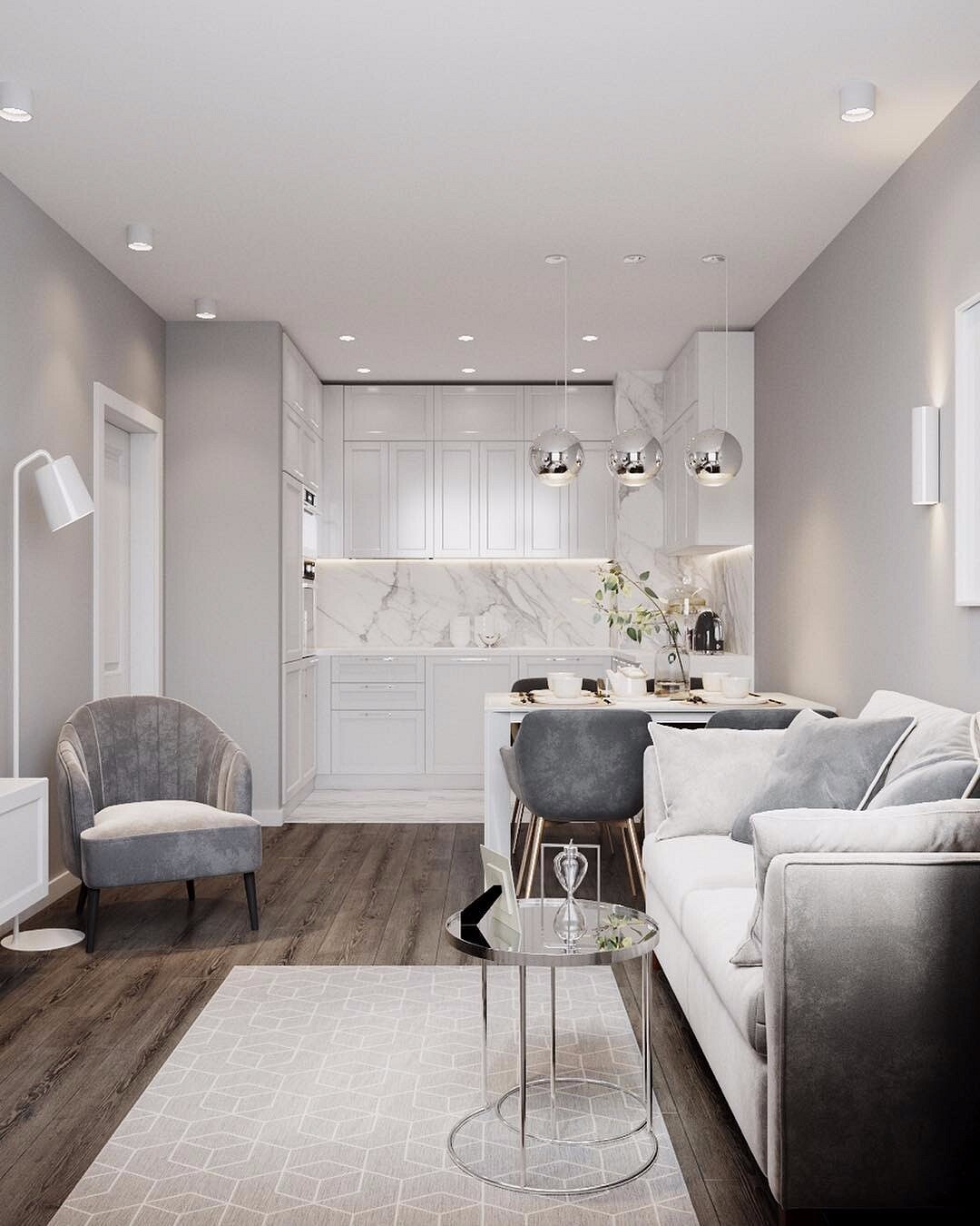 Интерьер квартиры в серо белых тонах