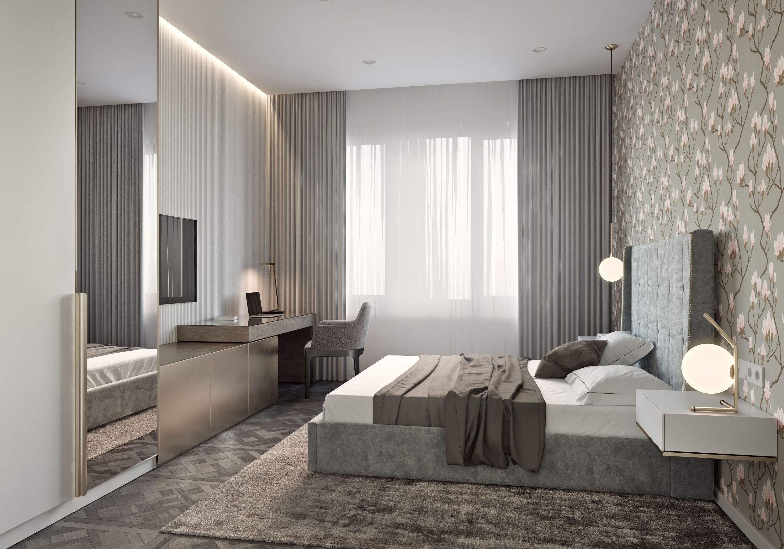 Спальня в современном стиле в серых тонах
