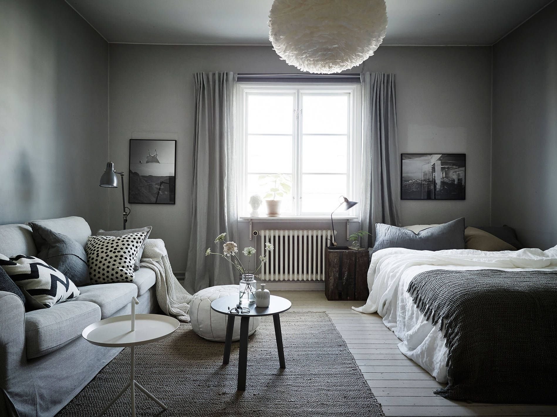 Серые стены в спальне