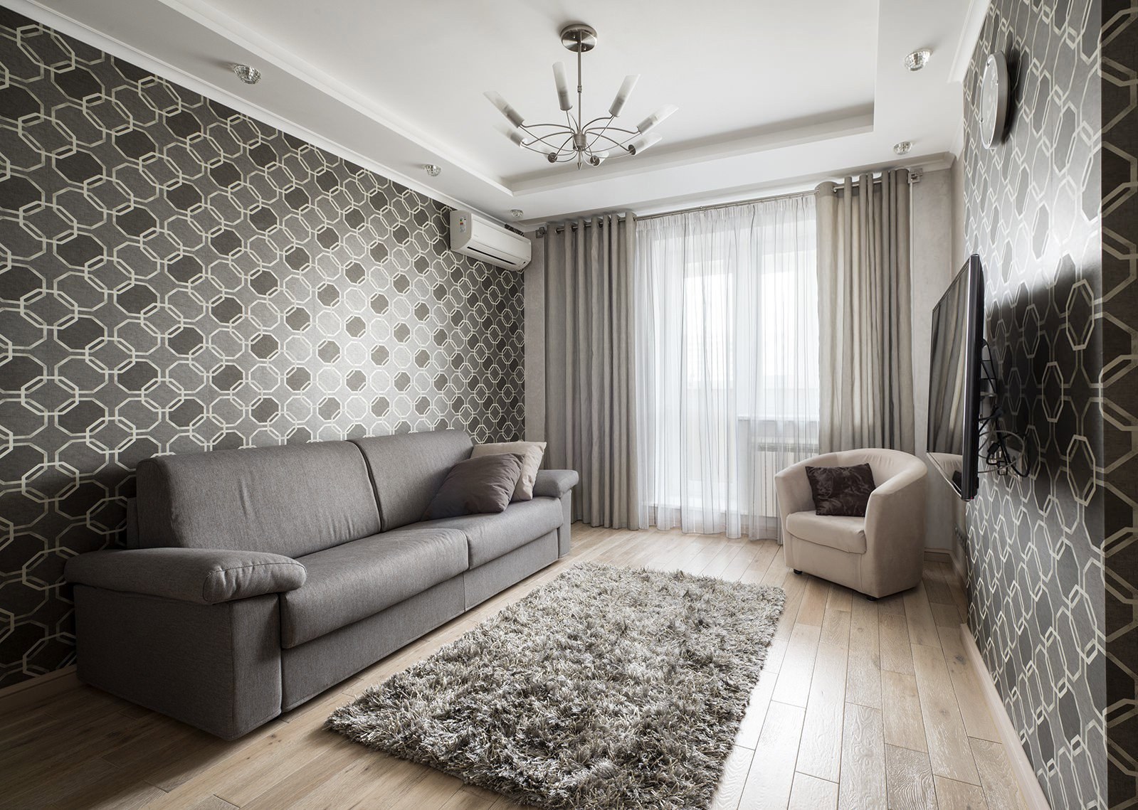 Гостиная с серыми обоями