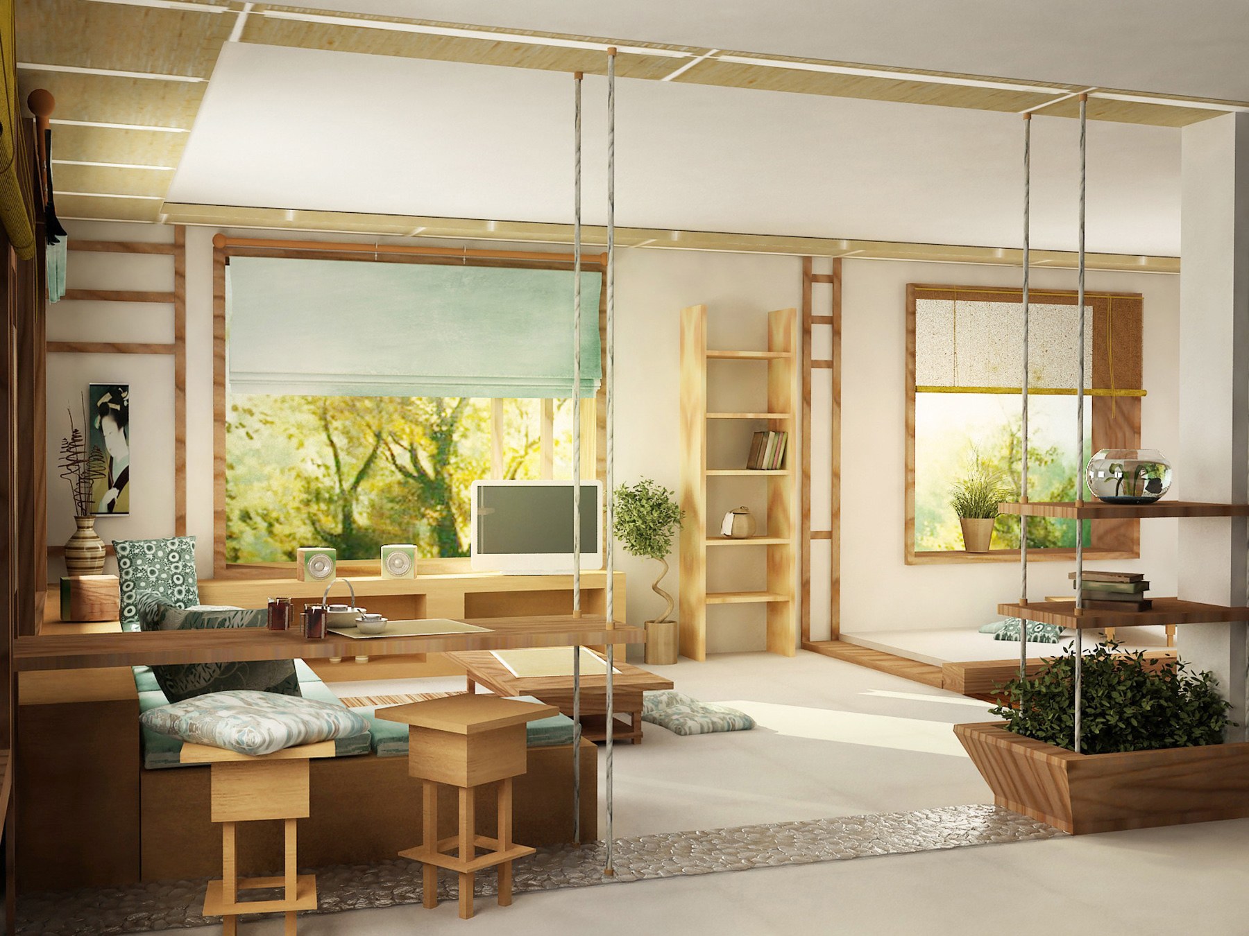 Рабочий кабинет в японском стиле в интерьере (48 фото)