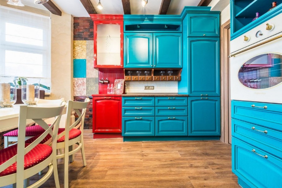 Бирюзовая кухня в интерьере сочетание цветов (47 фото)