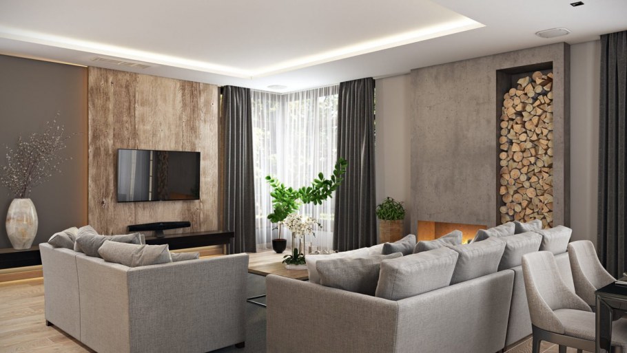 Отделить зону телевизора в узкой гостиной в интерьере (50 фото)