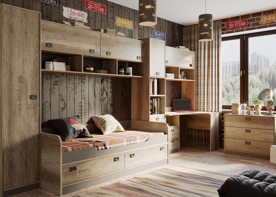 Дизель кровать 90/d2, дуб Мадура/Энигма, Анрэкс