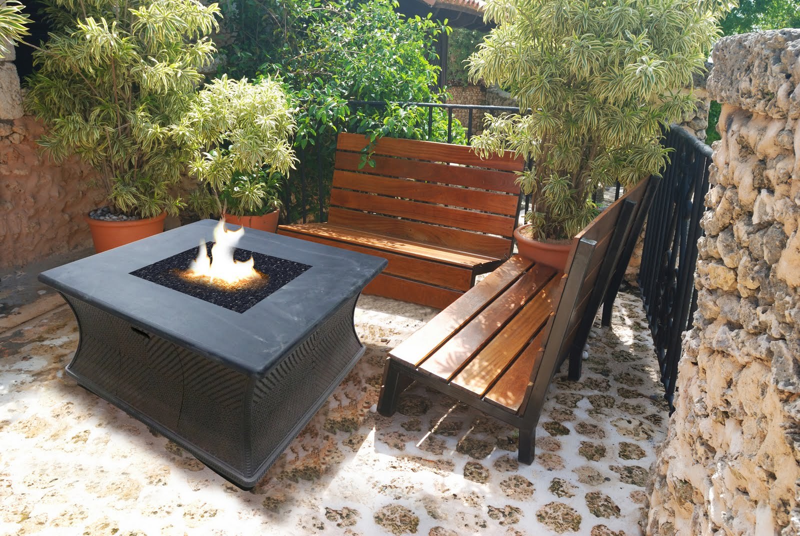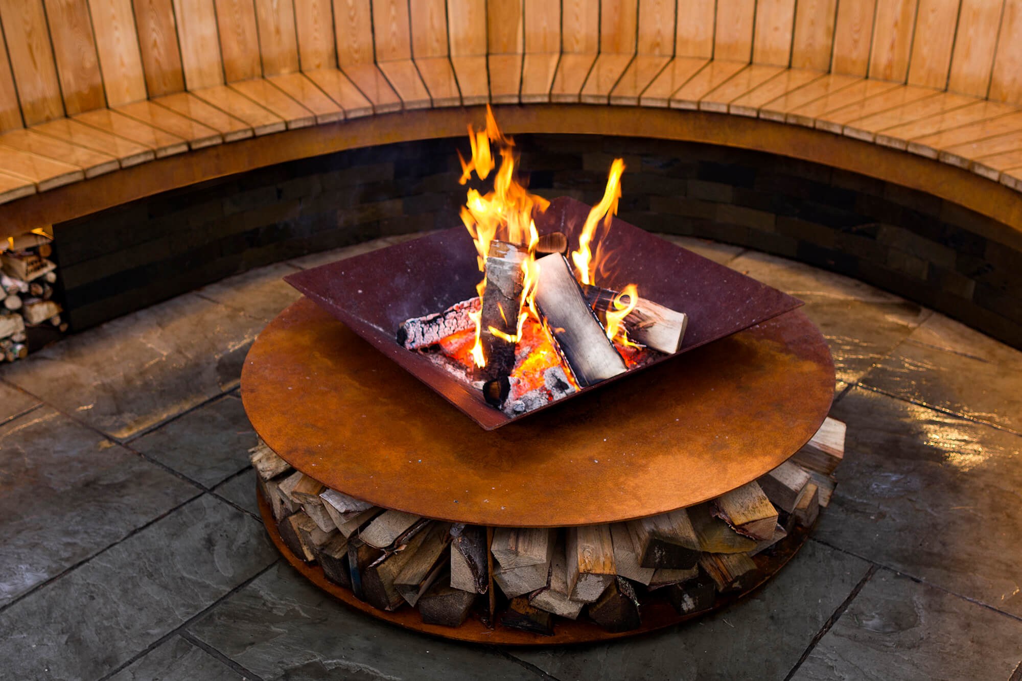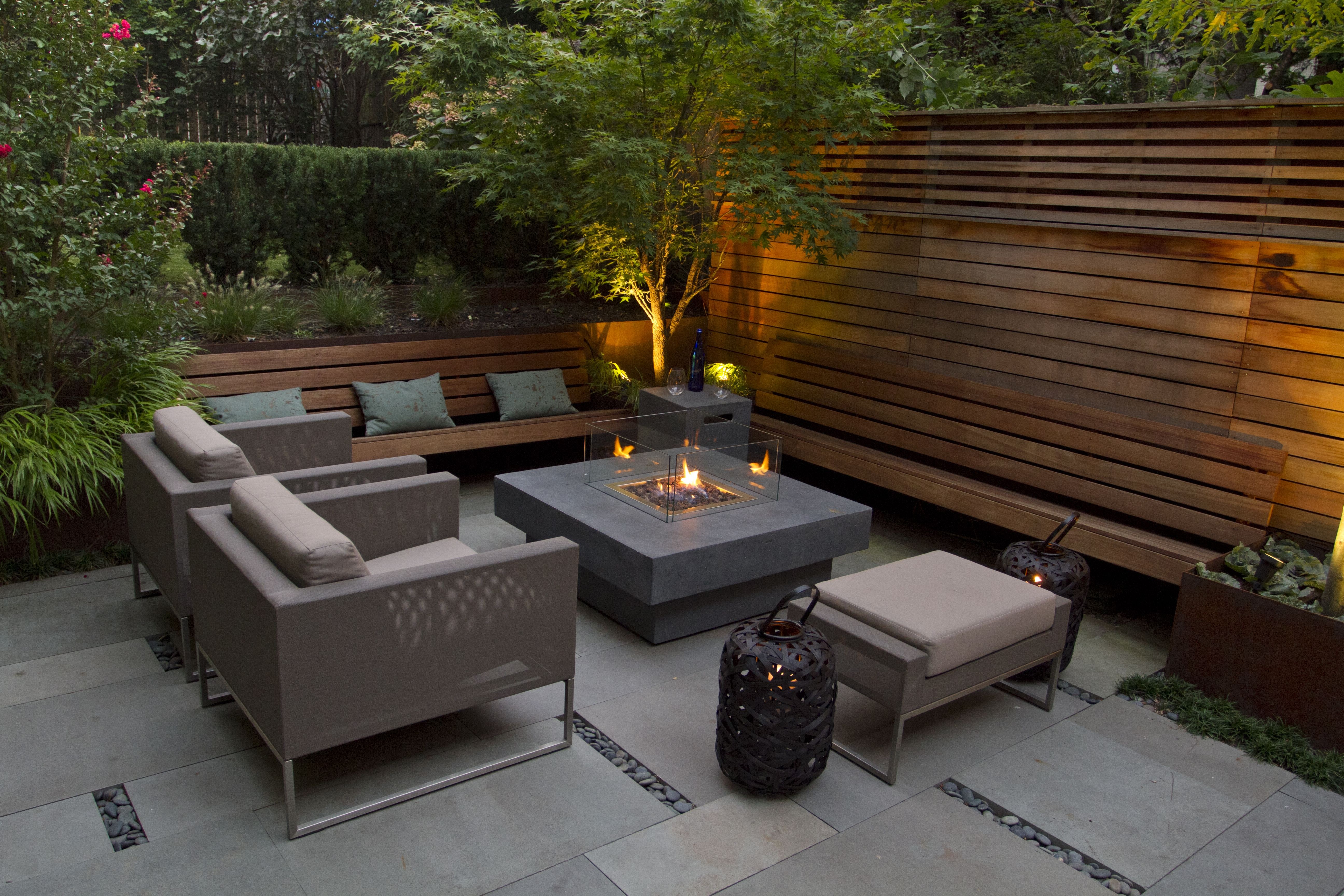 Уличная патио зона с костром