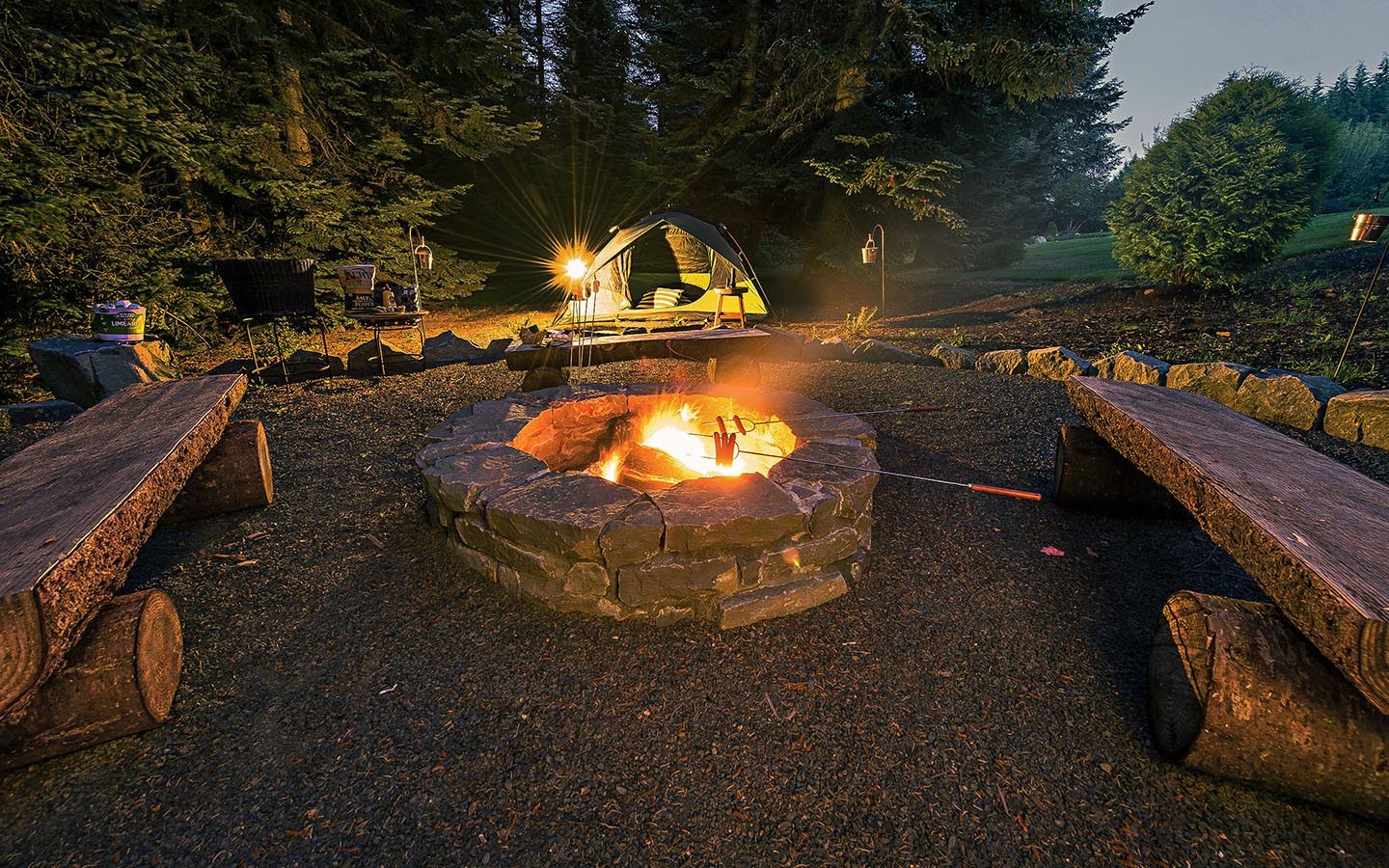 Скамейки вокруг костра