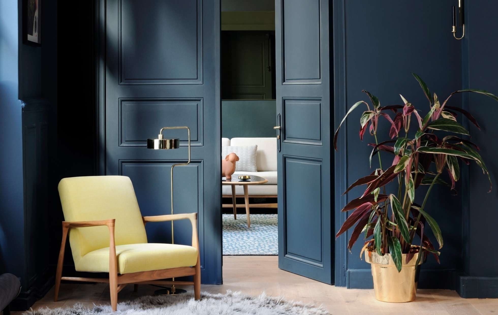 Интерьер с лаковыми желтыми дверями