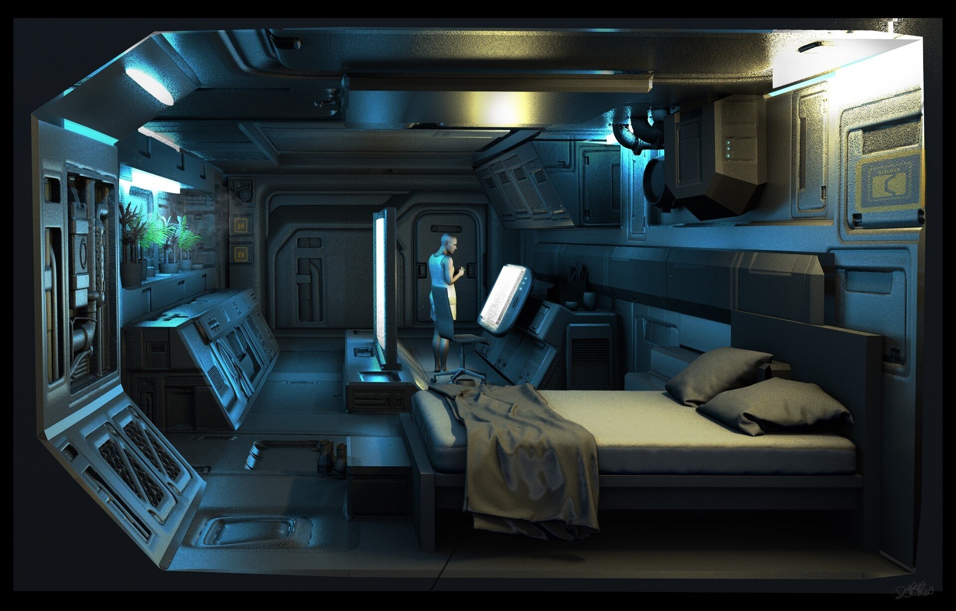 Каюта космического корабля Sci-Fi