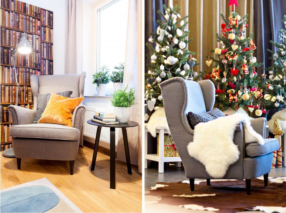 Кресло икеа СТРАНДМОН бежевый в интерьере