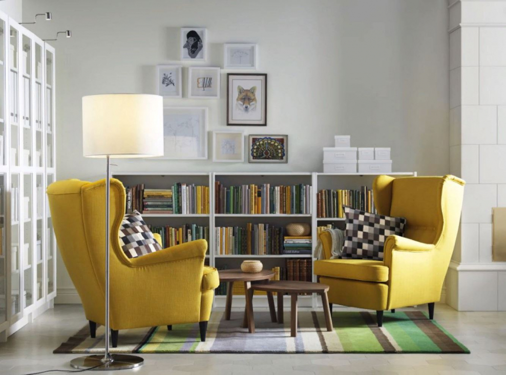 Кресло икеа желтое СТРАНДМОН В интерьере