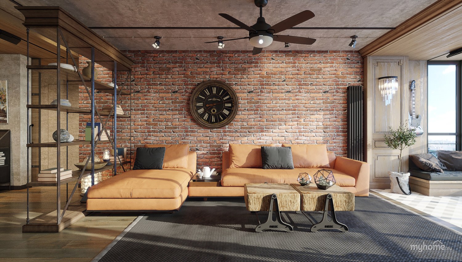 Индустриальный стиль Индастриал интерьер гостиная