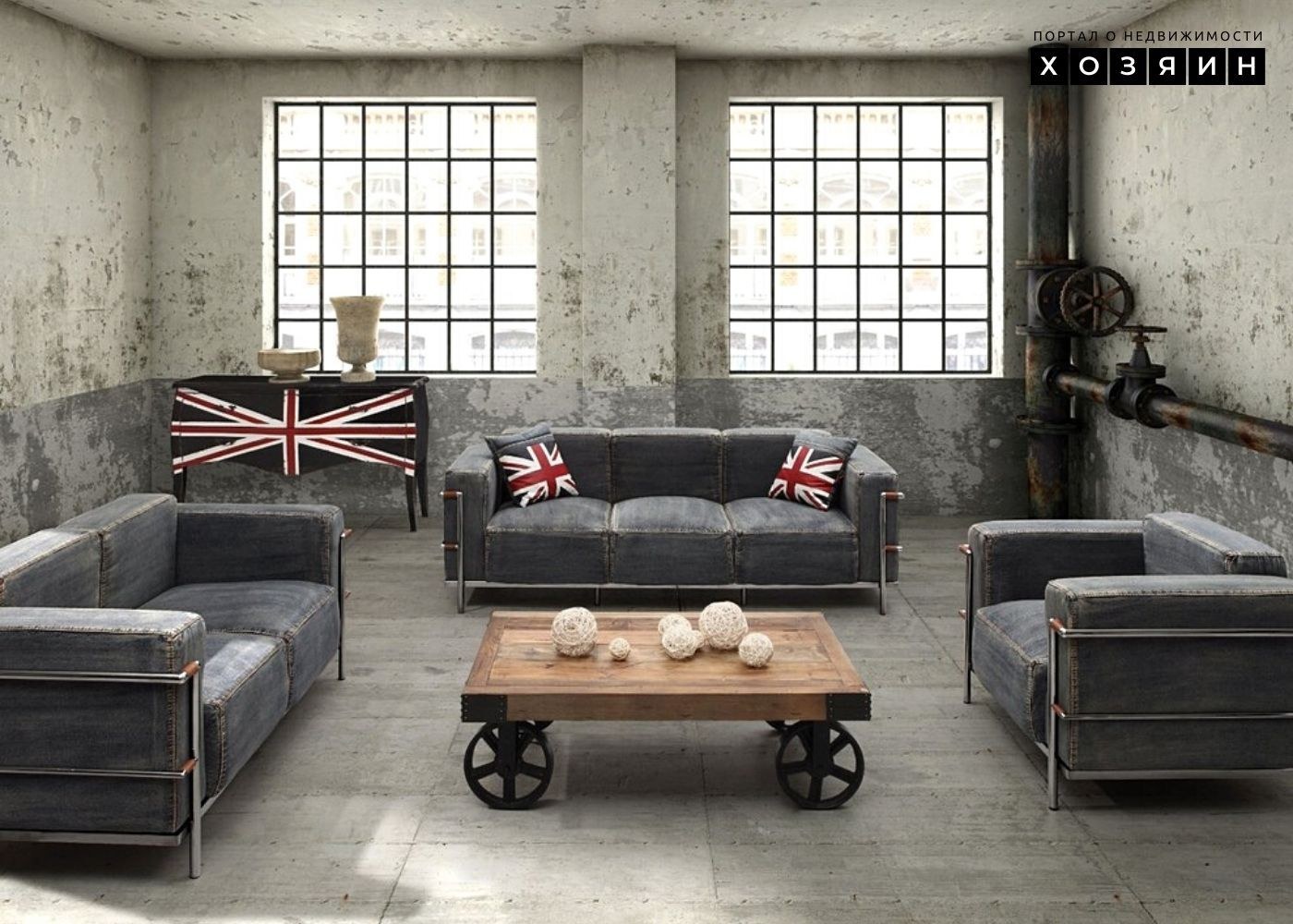 Диваны в стиле лофт в интерьере