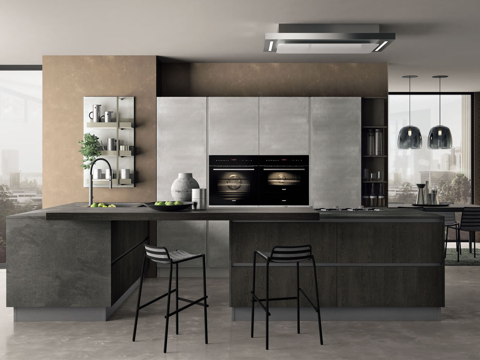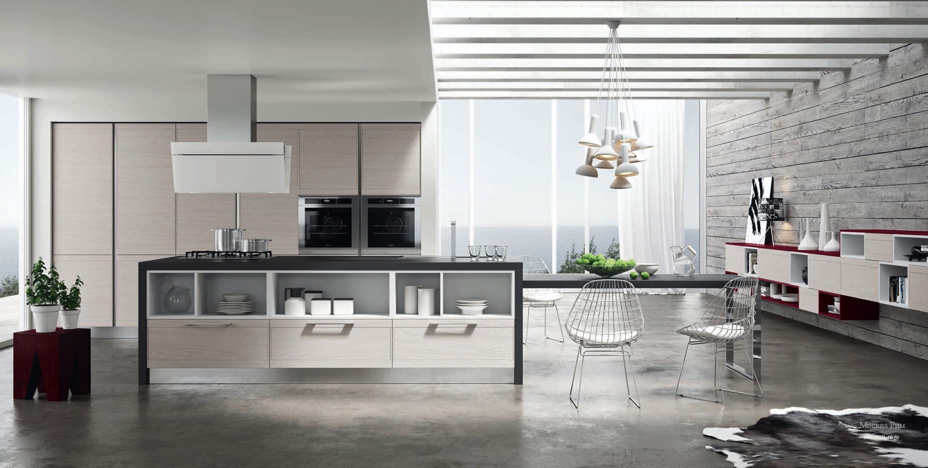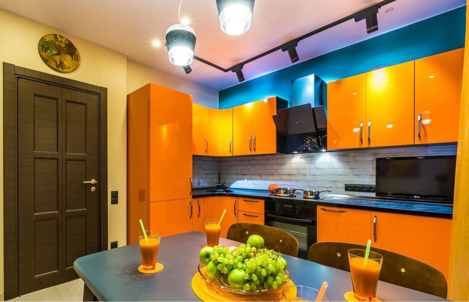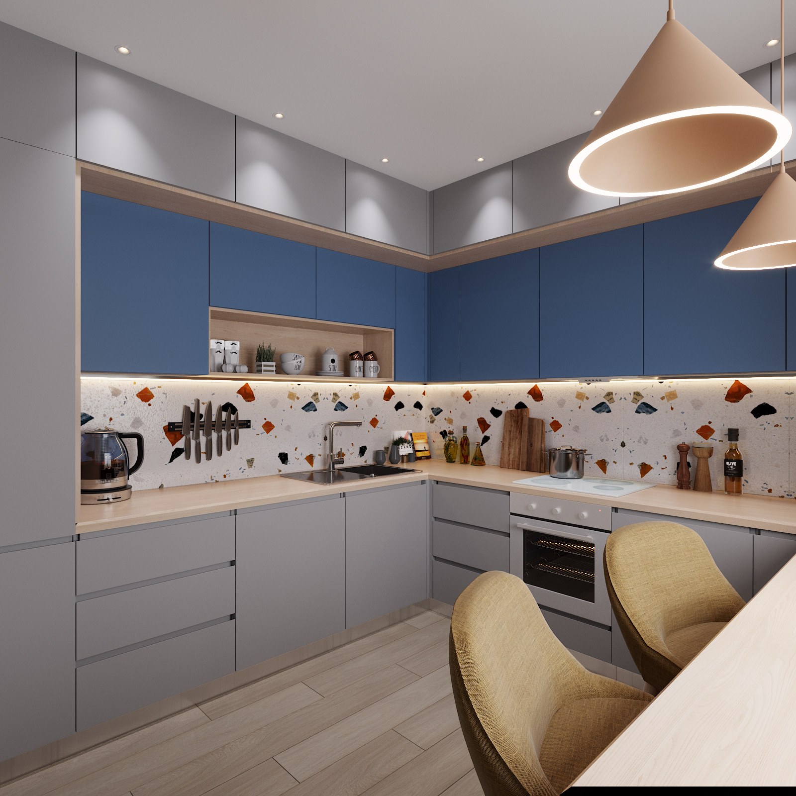 Кухня из МДФ Крашеного «Орион» NCS s3005-g50y матовый/RAL 9003