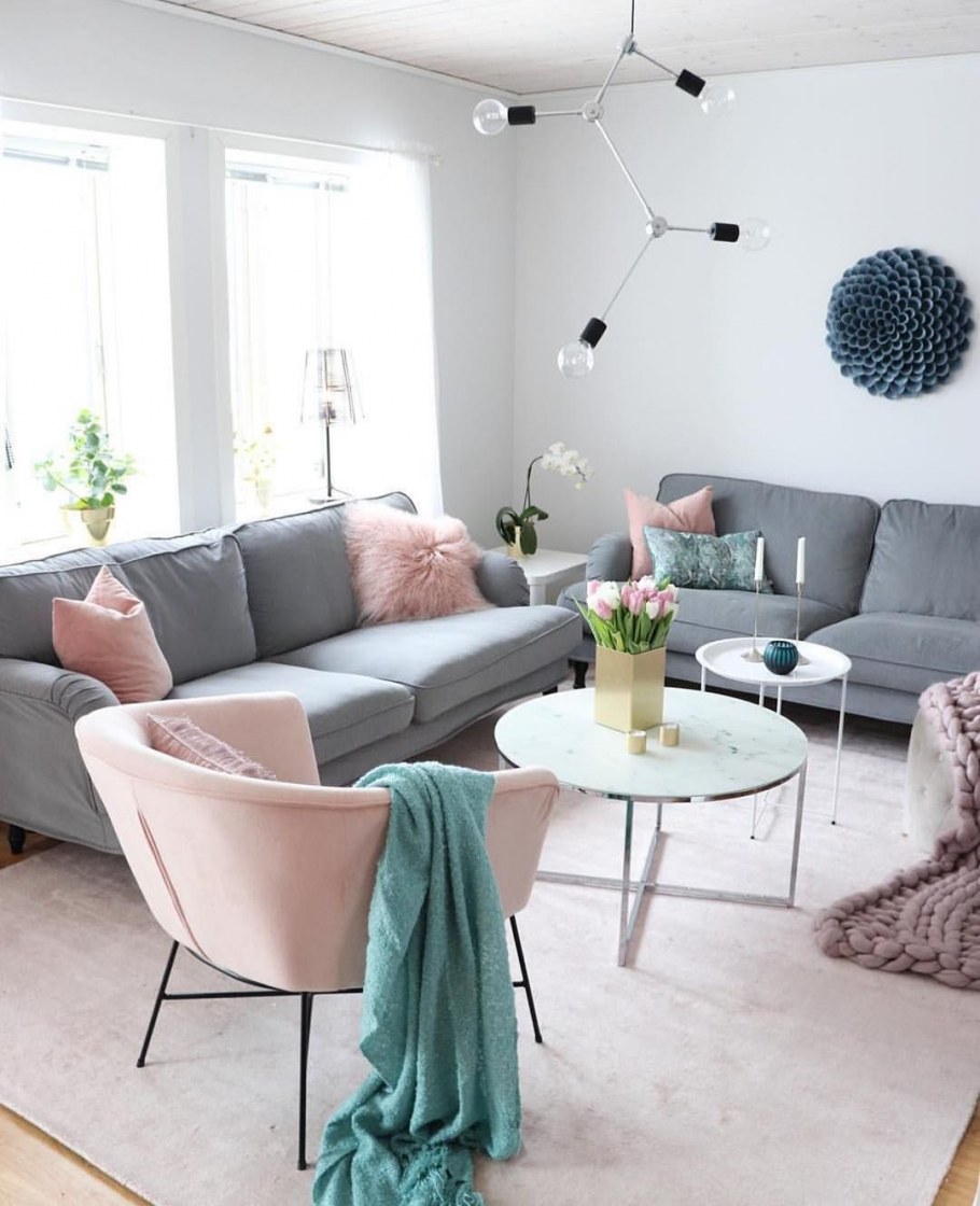 Гостиная в пудровых оттенках в интерьере (37 фото)