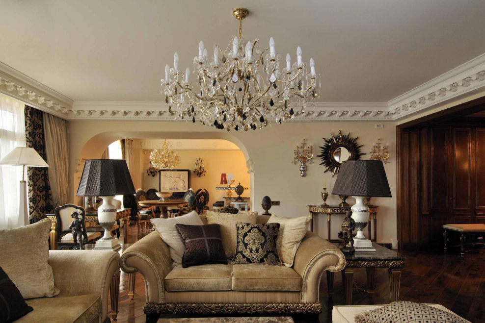 Люстры для гостиной в классическом стиле в интерьере (43 фото)