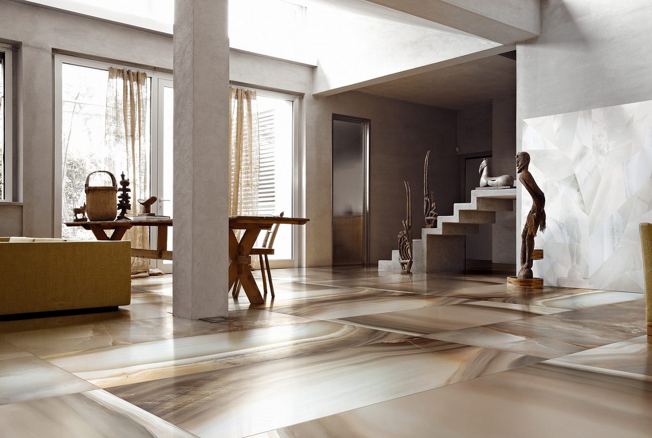 Керамогранит для пола под мрамор в интерьере (47 фото)