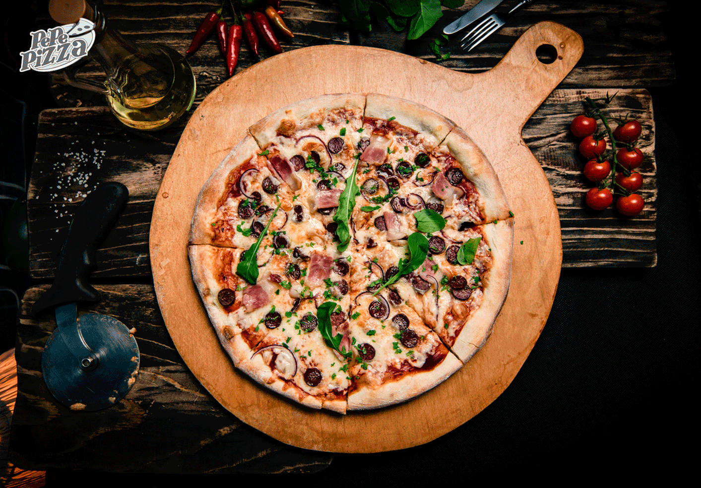 Пицца пепперони и суши