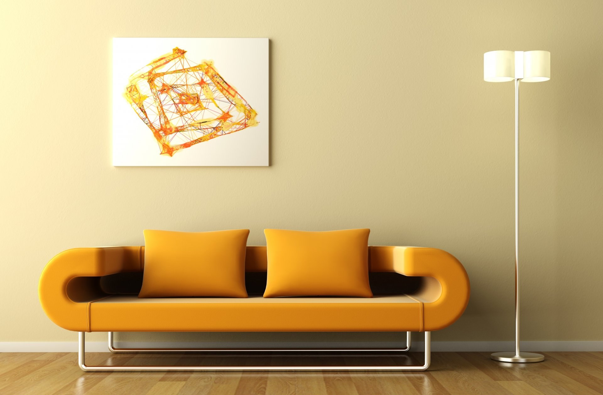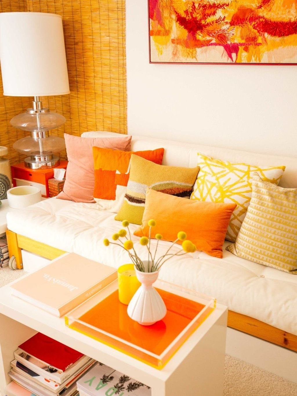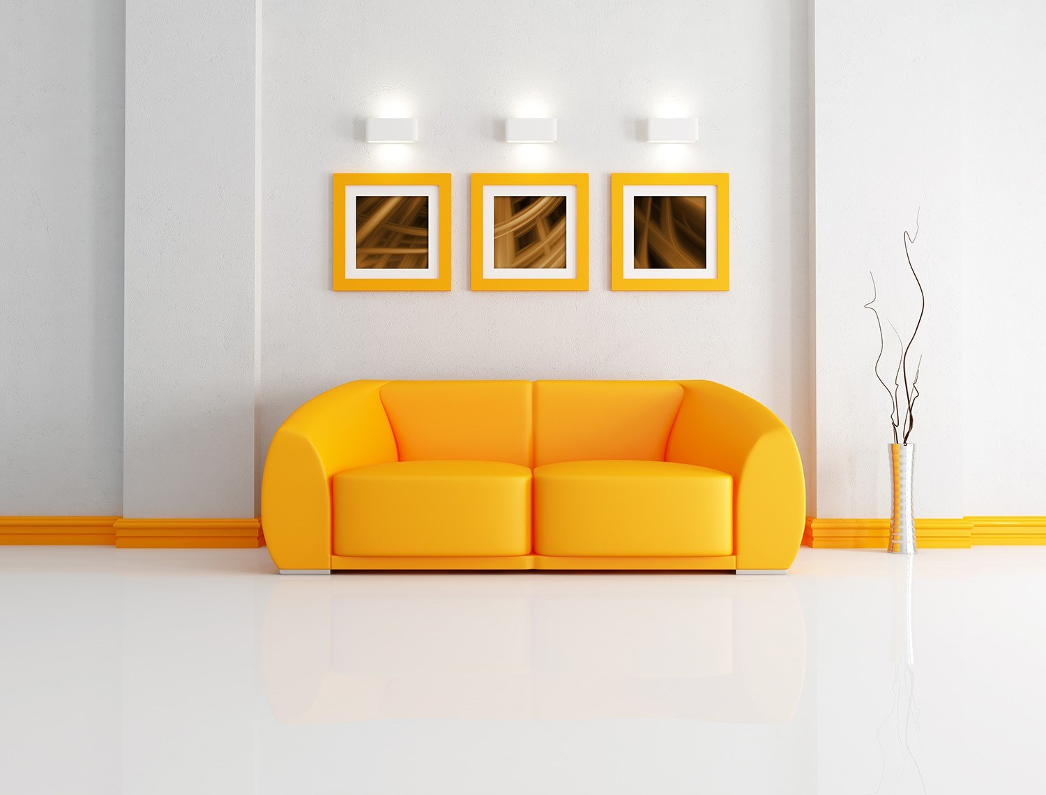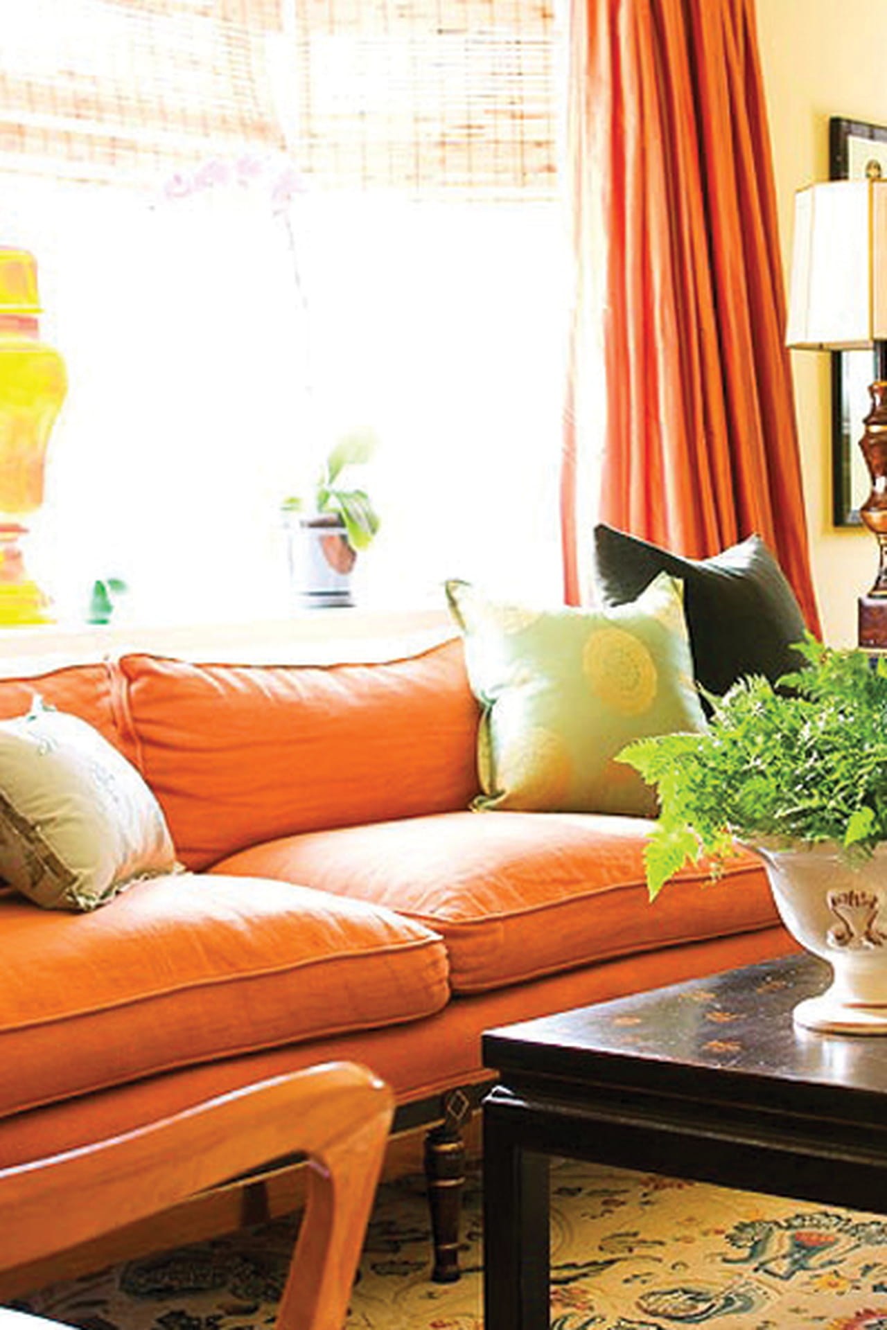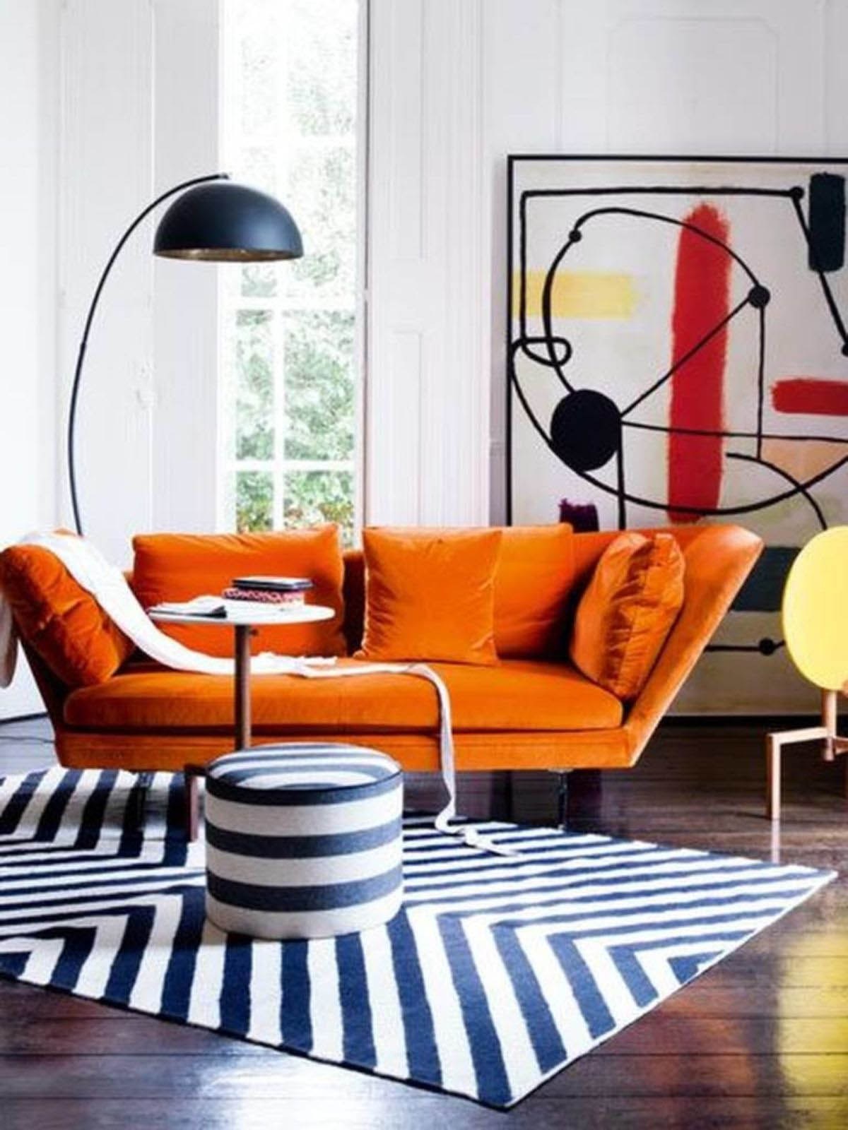 Оранжевый диван в интерьере