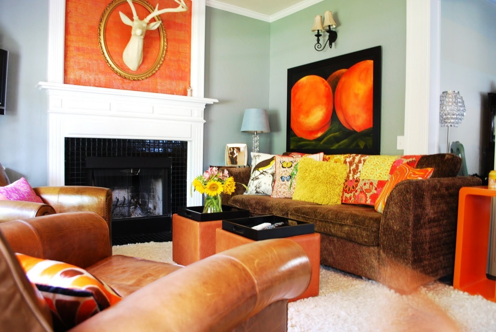 Оранжевый и бирюзовый в интерьере